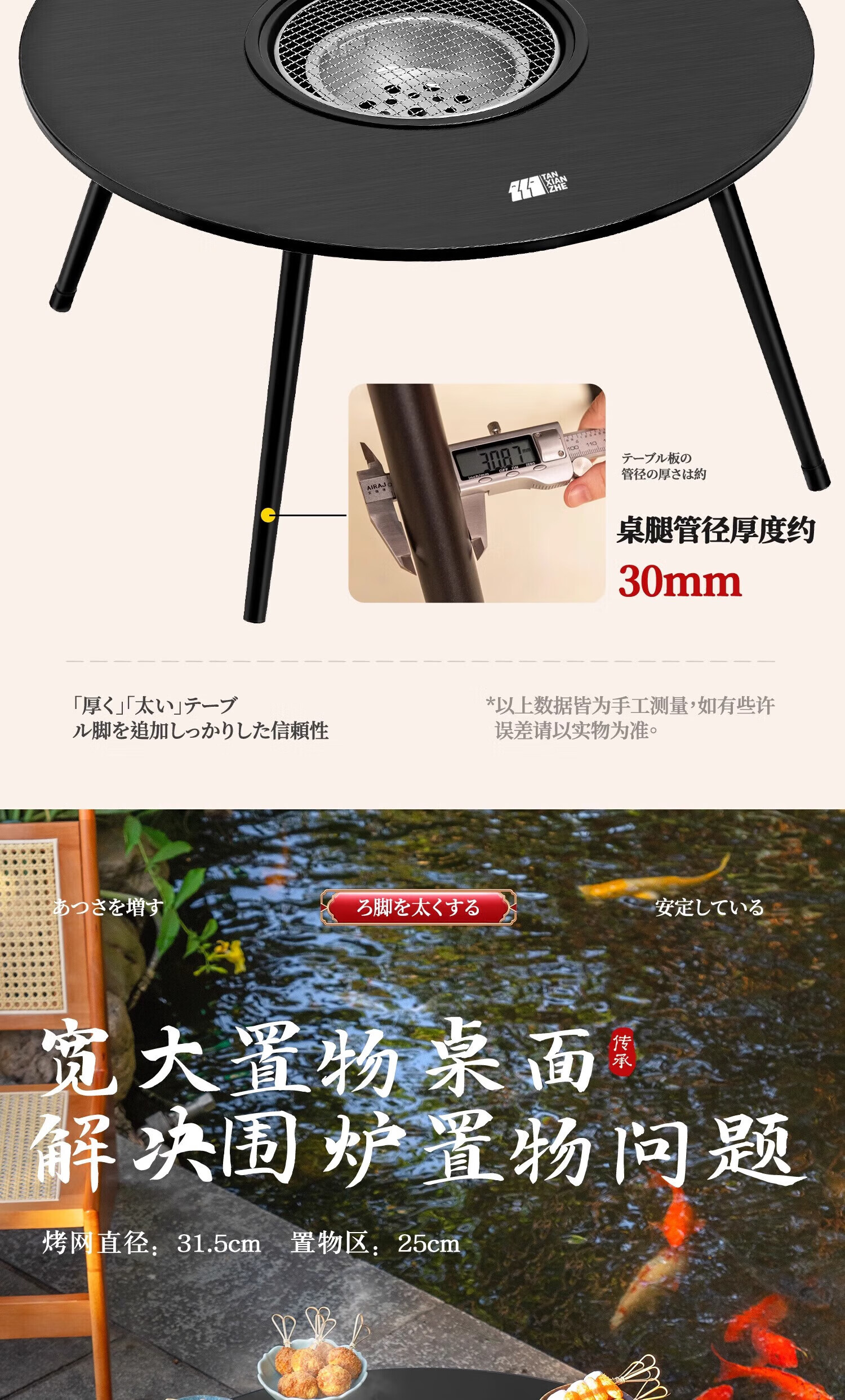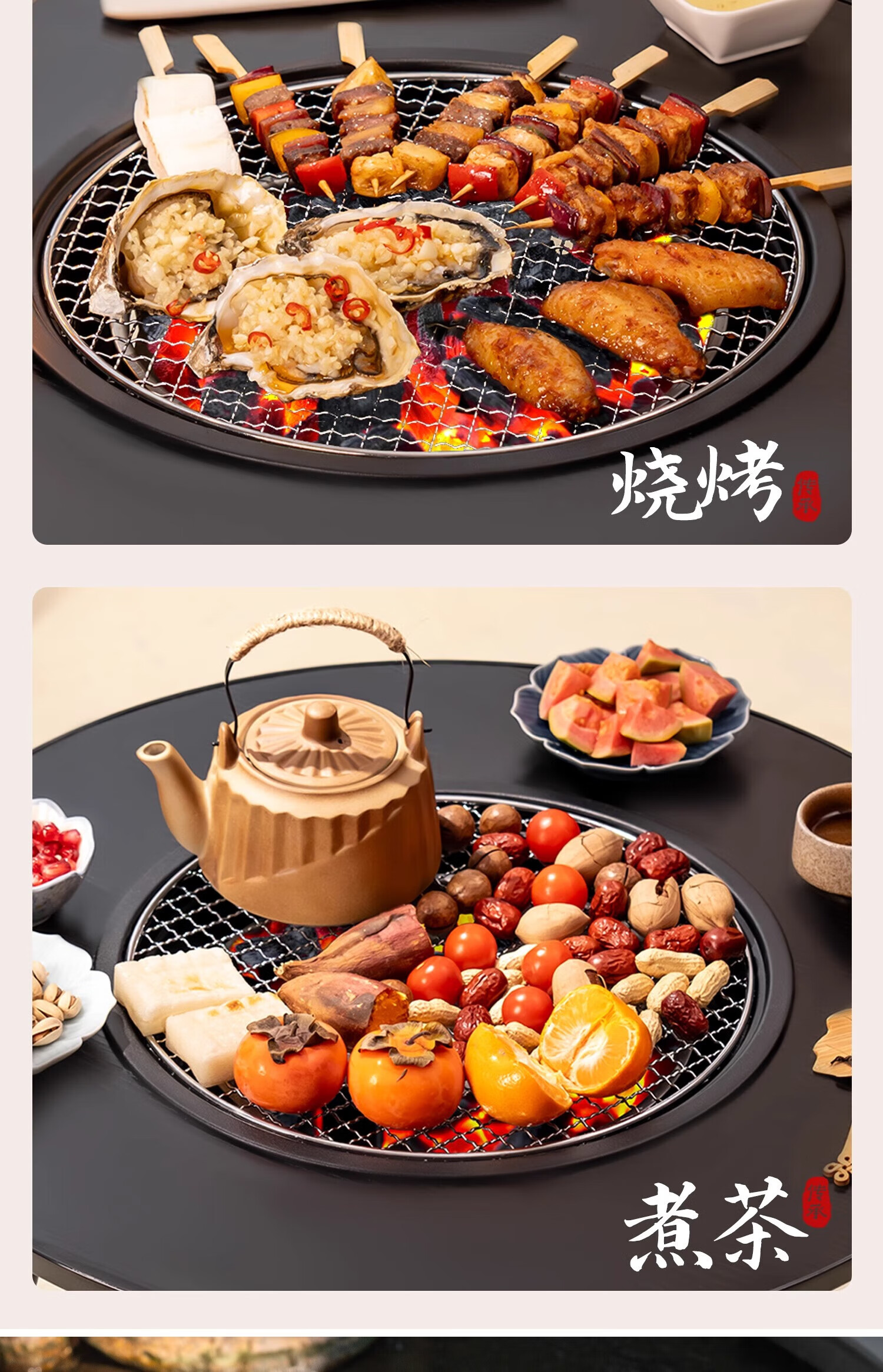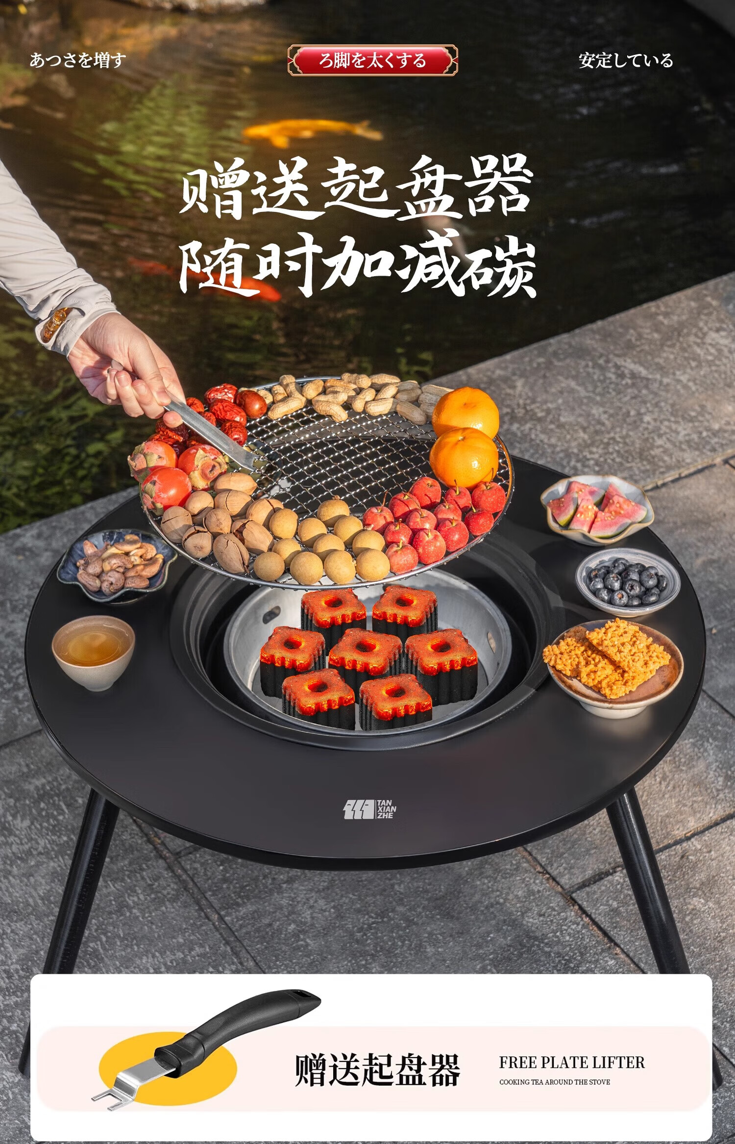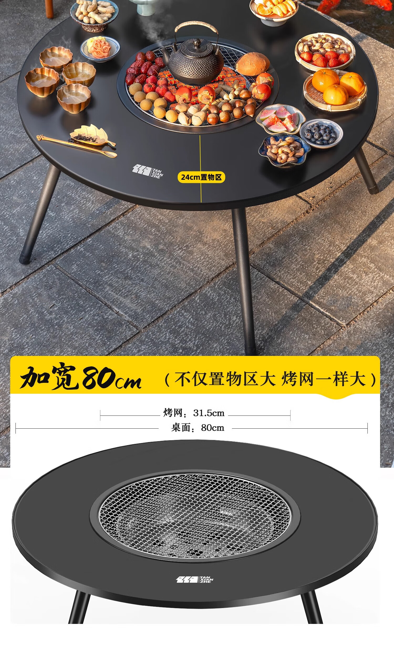 出去露营看到朋友家用了,觉得很方便,又可以喝茶,又可以烧烤,主要可以直接在桌子边吃就很好呀。