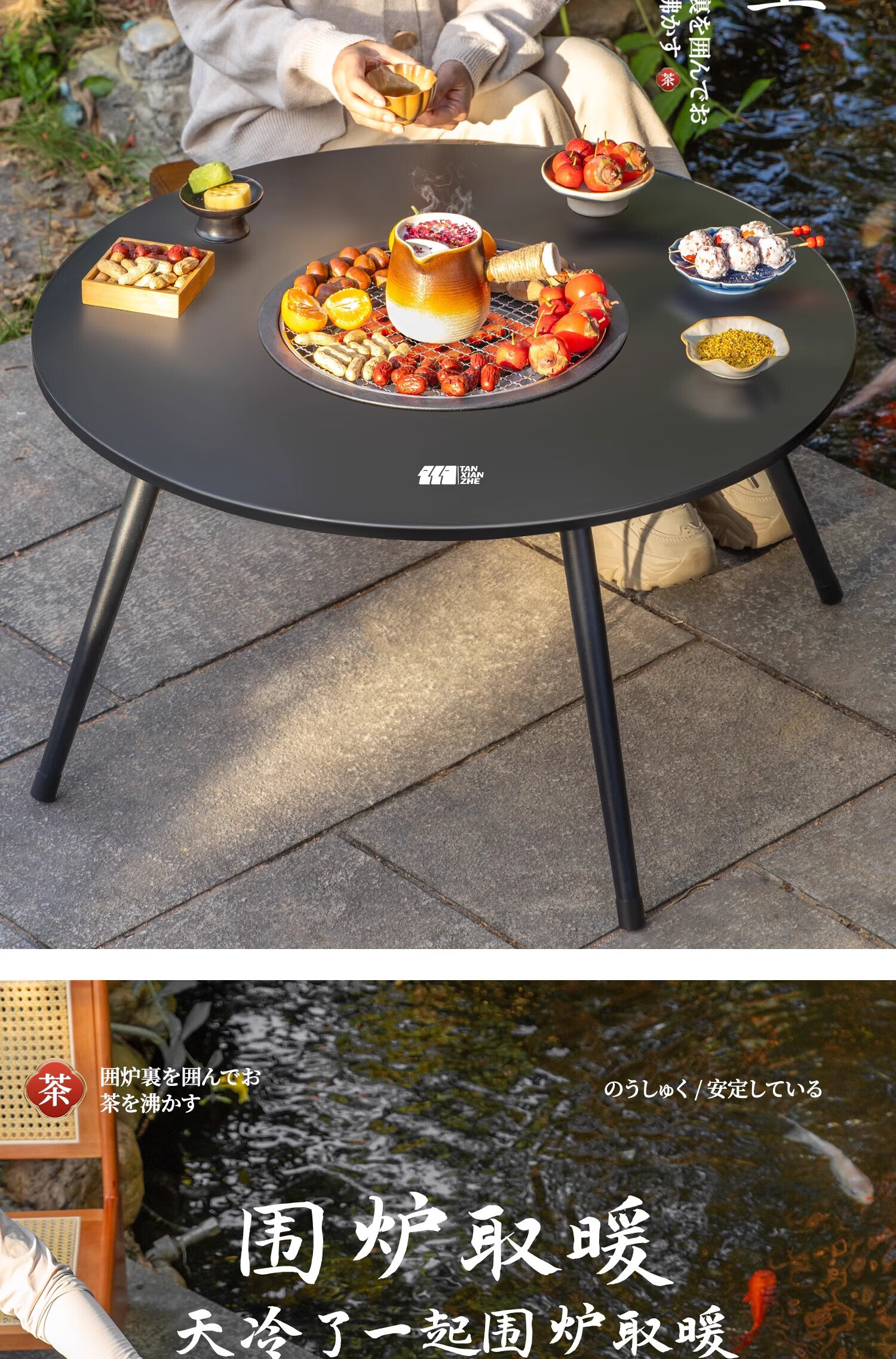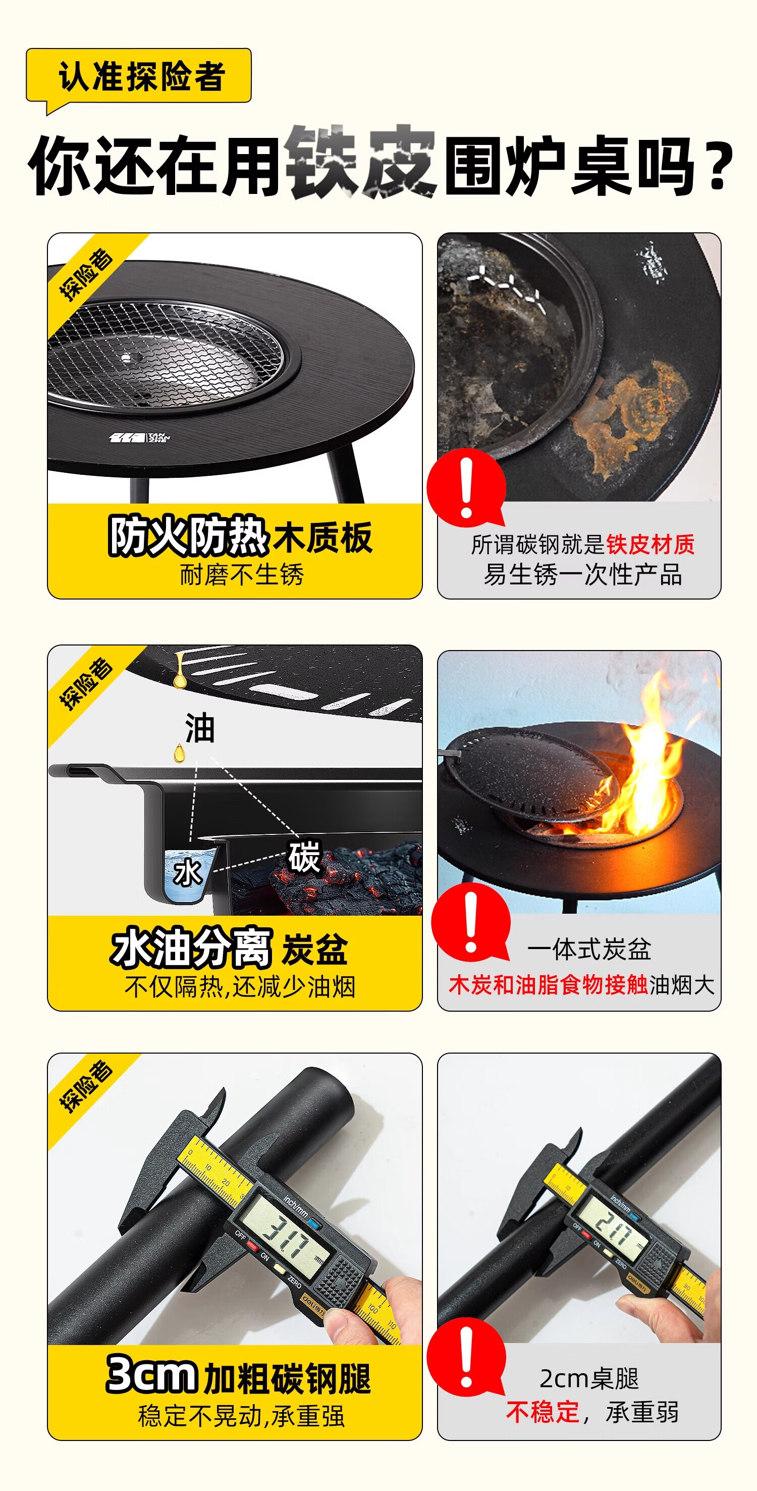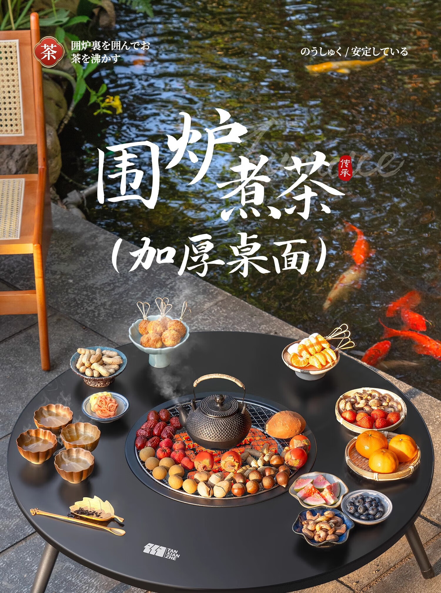 CAMELJEANS围炉煮茶桌电碳两用烤奶烧烤炉家用户外露营烤火炉套装 围炉桌-木纹色-175CH25026
