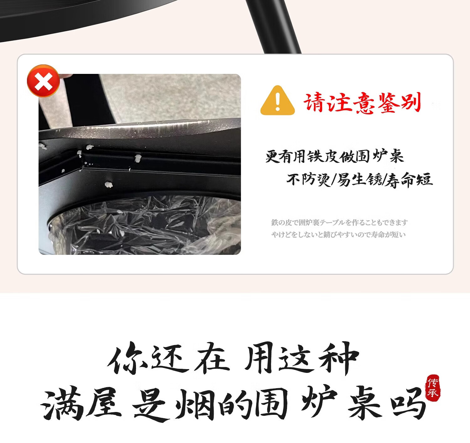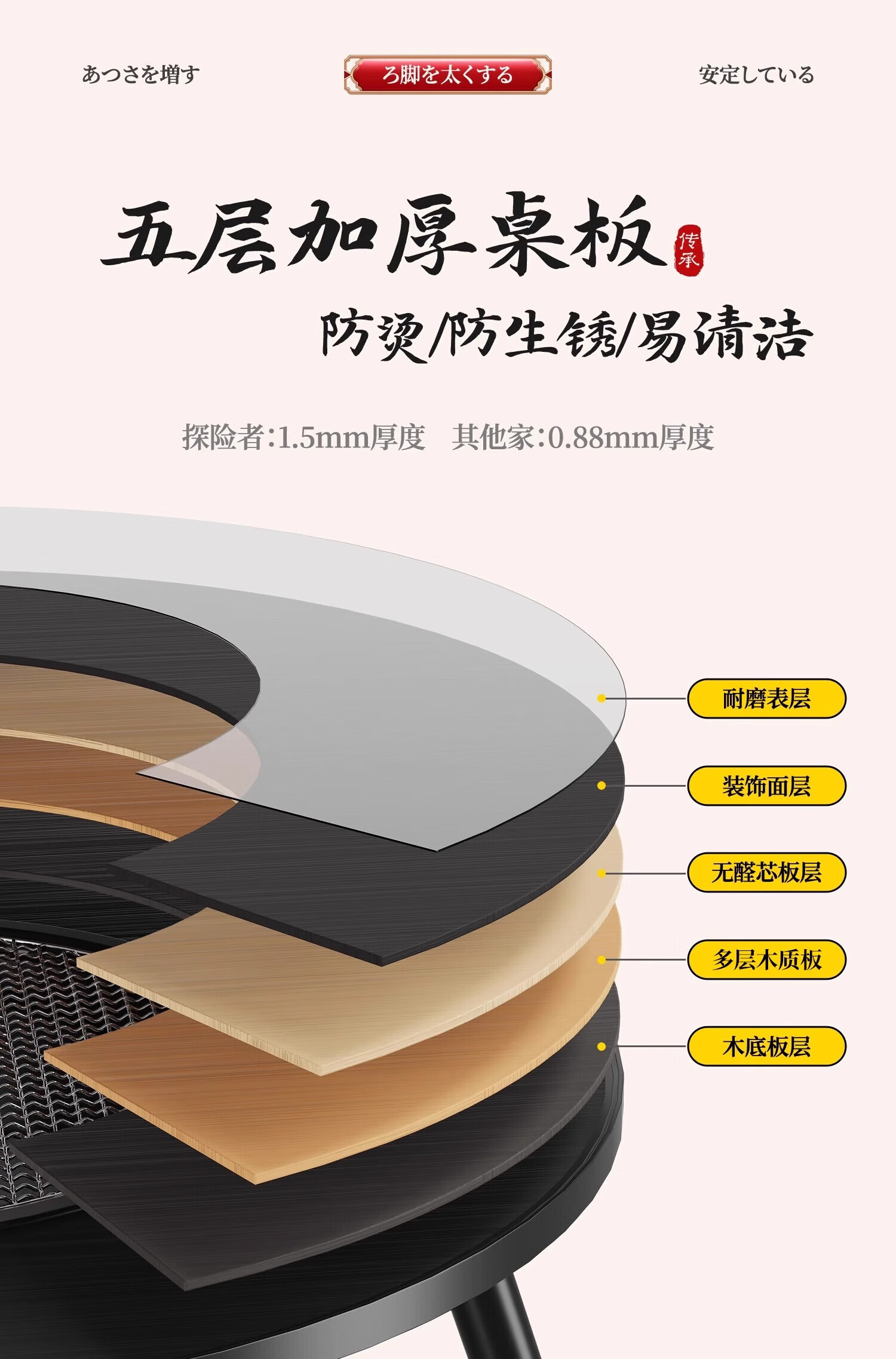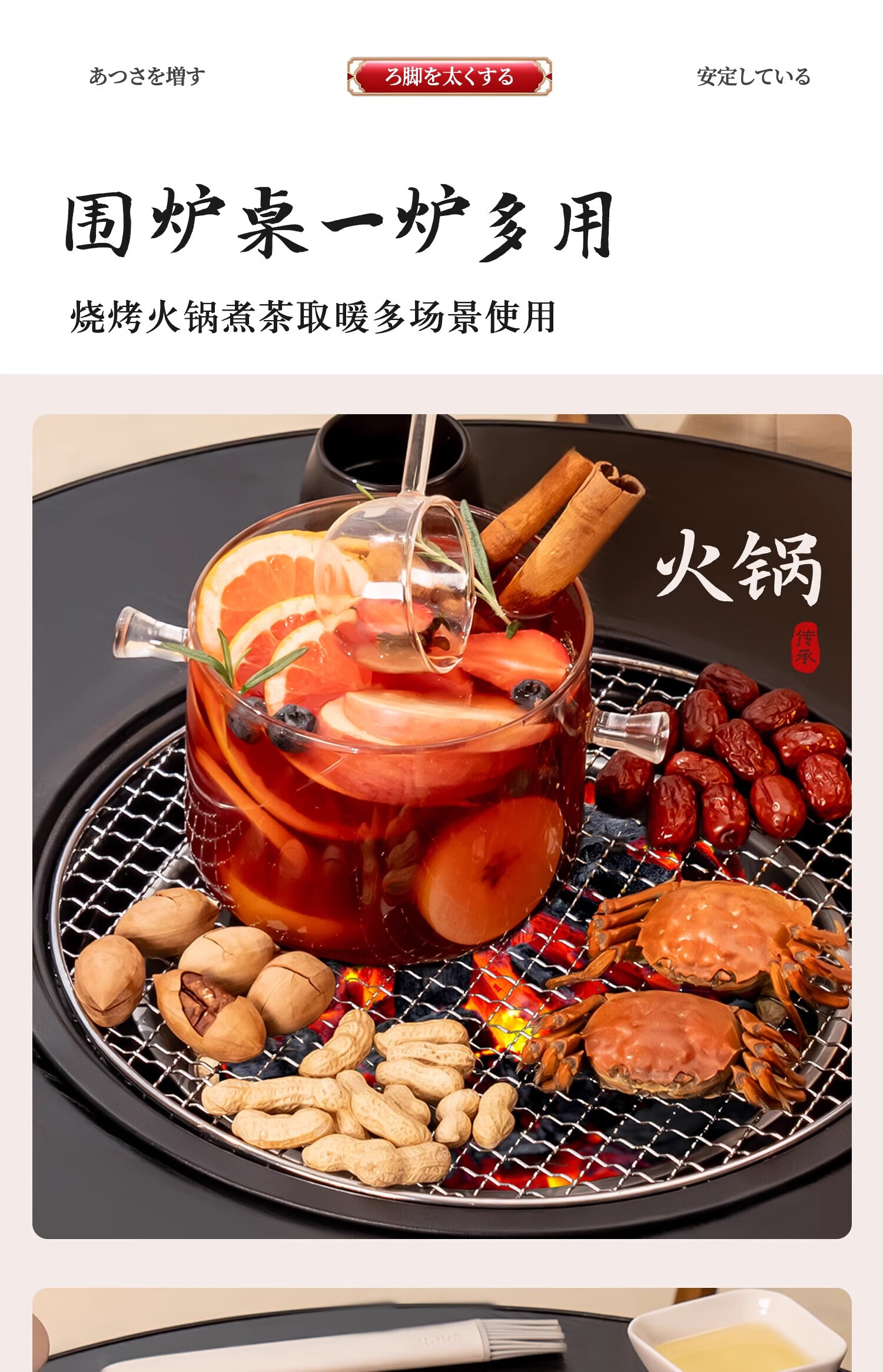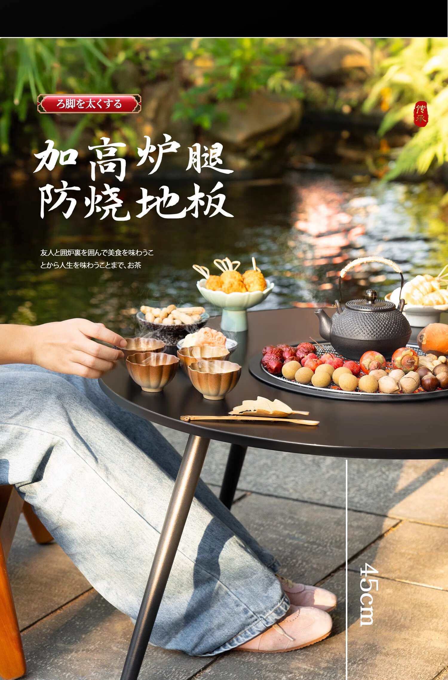 CAMELJEANS围炉煮茶桌电碳两用烤奶烧烤炉家用户外露营烤火炉套装 围炉桌-木纹色-175CH25026