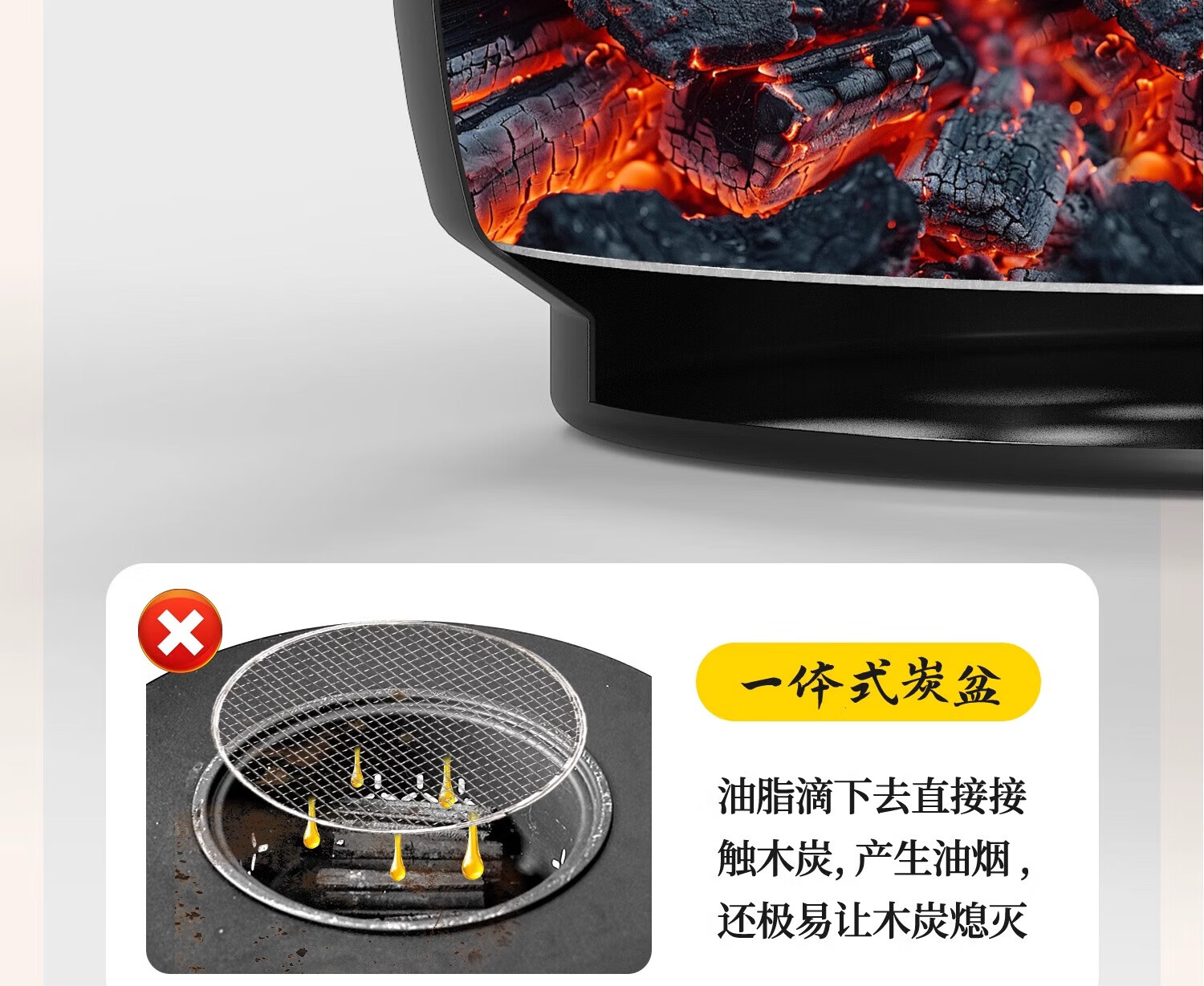 抽屉式圆形炉体铸铁炭炉冬天围炉煮茶取暖火锅烧烤铸铁炉圈嵌入用 炉面直径36厘米可调火力双层炉炉高21