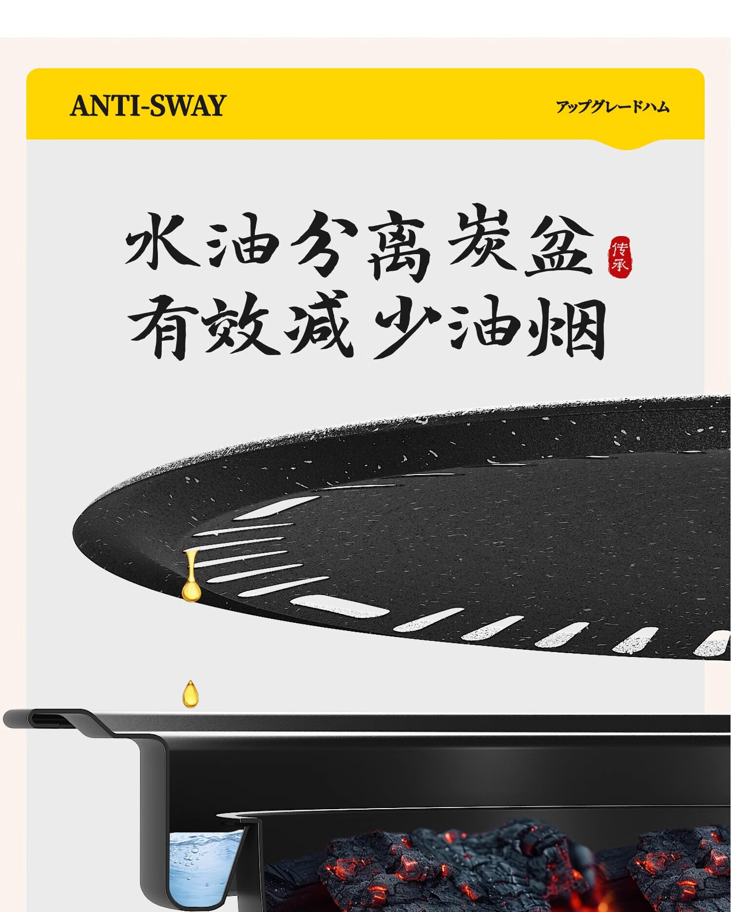 烧烤炉的表面处理得非常光滑,没有明显的毛刺或不平整的地方。