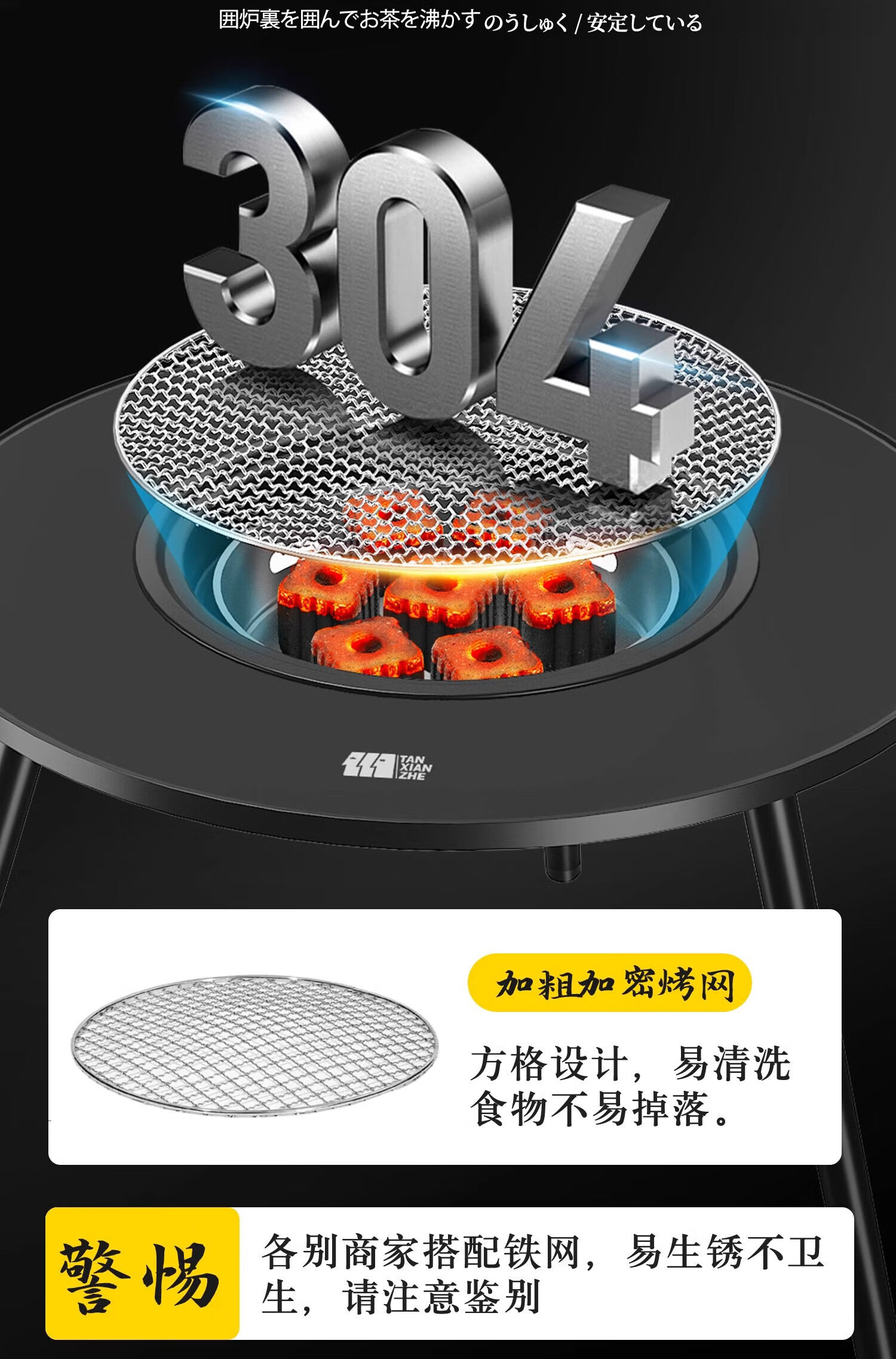 探险者(TAN XIAN ZHE)户外烧烤桌炉一体烧烤炉户外碳烤炉桌面烤肉炉烧烤炉子庭院烤炉 【60CM】木纹桌+烤网