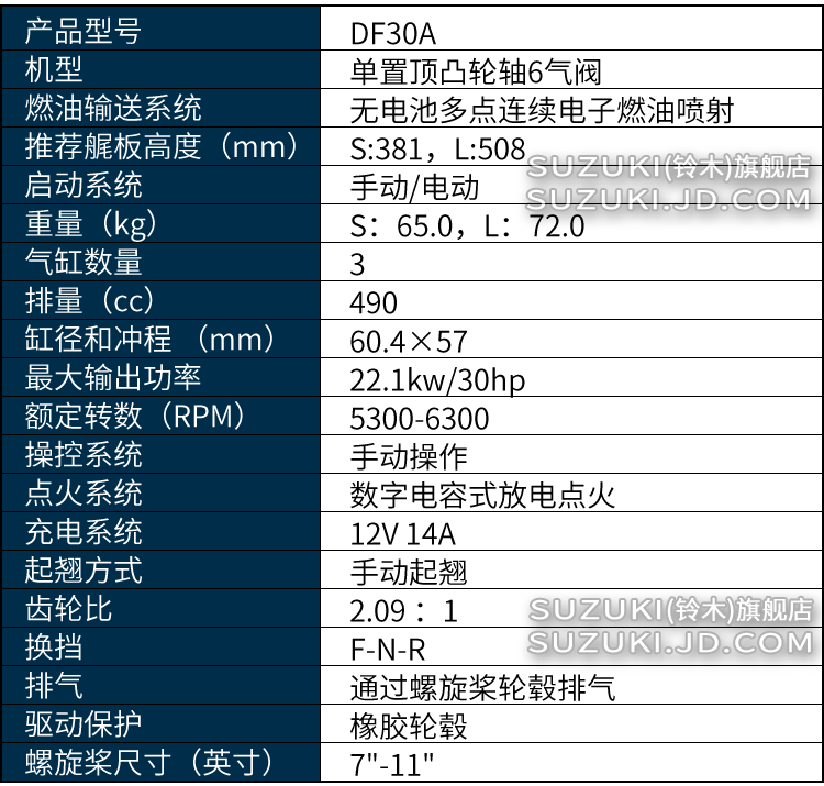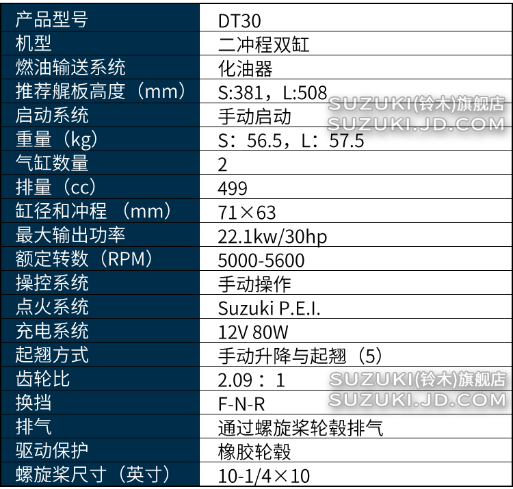 铃木 原装进口日本铃木船外机舷外机发动机船用动力挂机推进器马达 DF30AS 四冲程30马力 短轴款