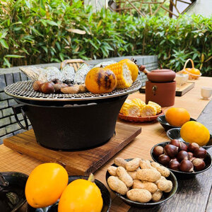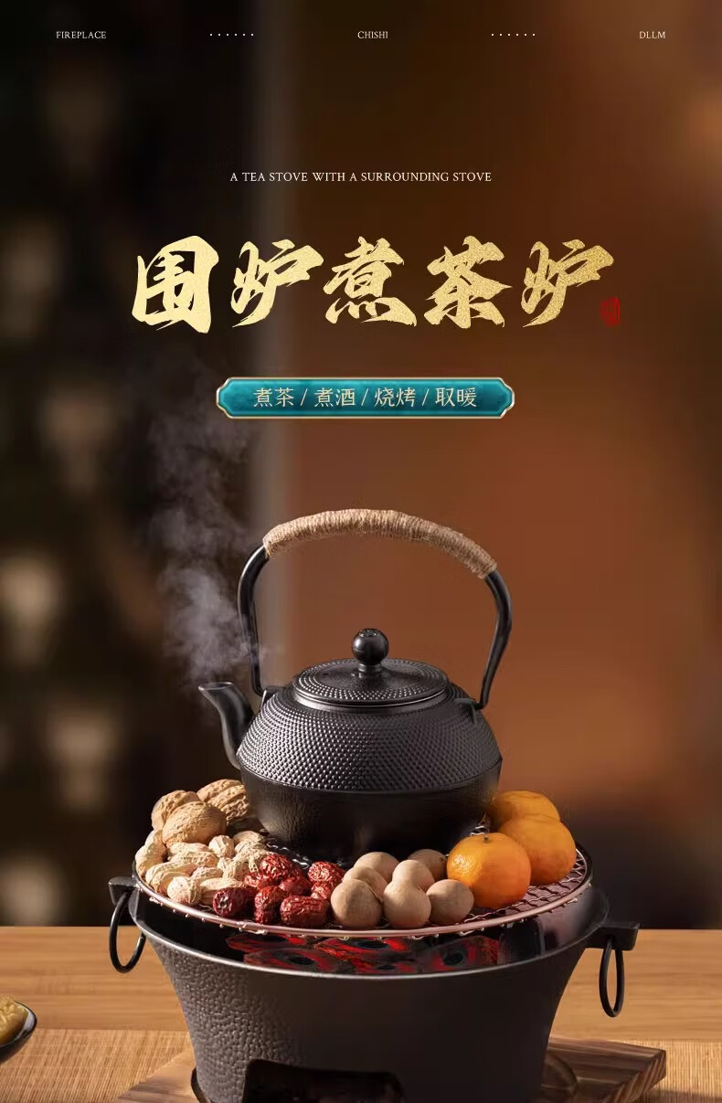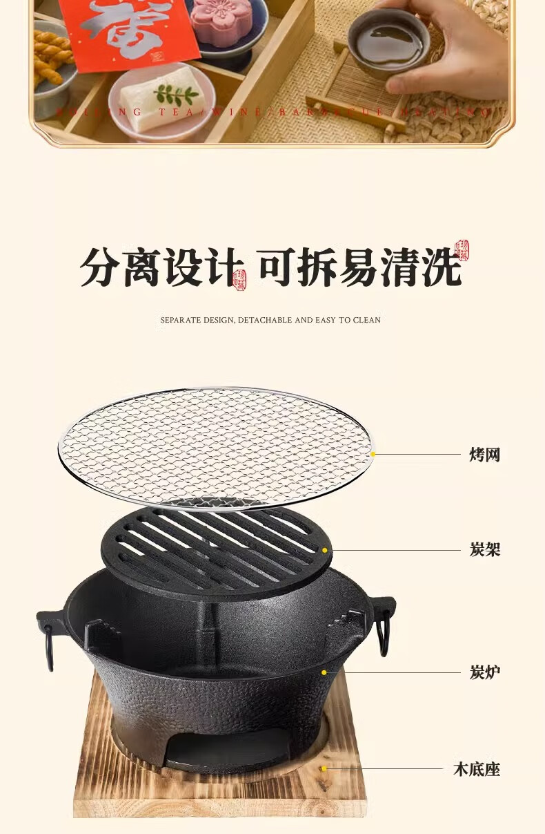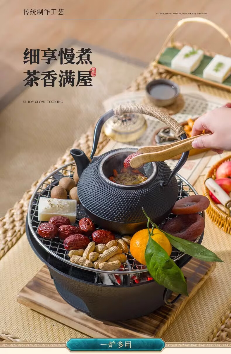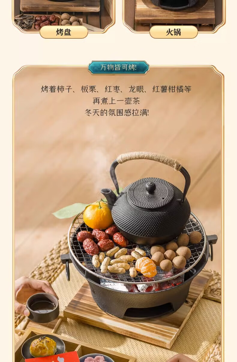 探险者围炉煮茶套装户外铸铁烤炉烧烤架室内取暖炉烧烤火盆炉木炭 加大号26cm铸铁炉+烤网+炭夹