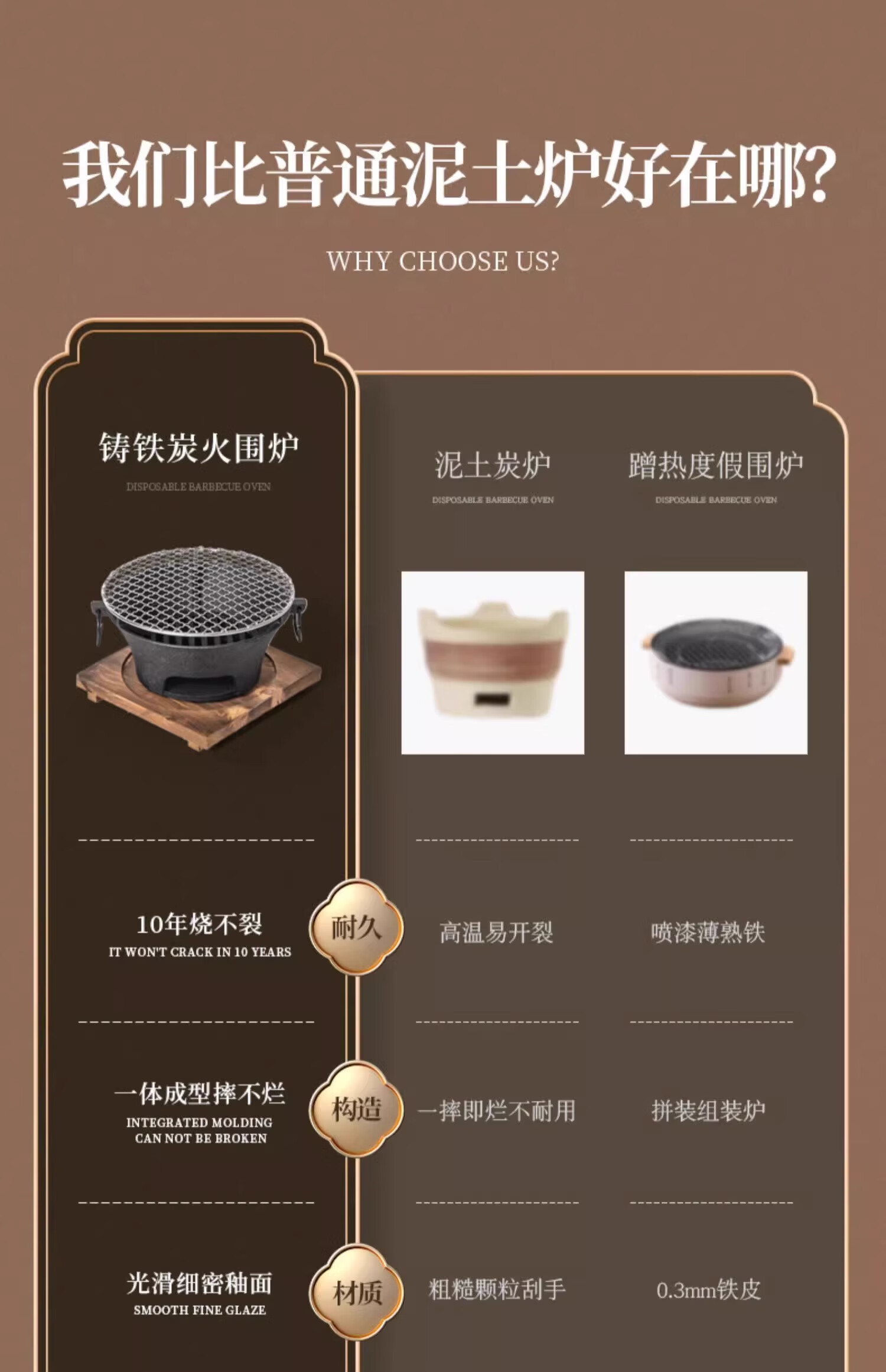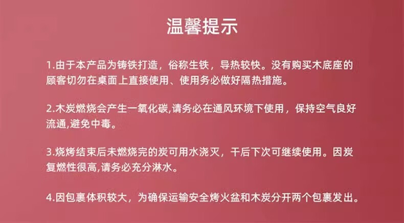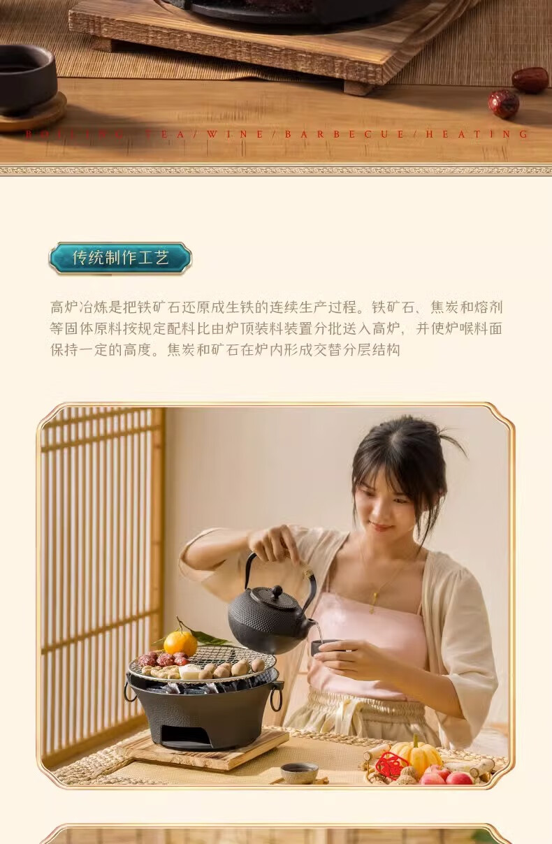 MPPMCK铸铁炭炉取暖围炉煮茶户外柴火灶家用烧碳火炉 加高款25CM炭炉[带提手+炉栅]