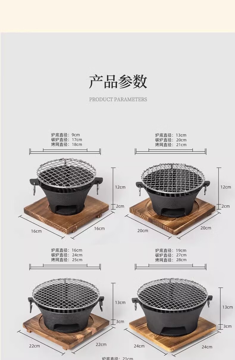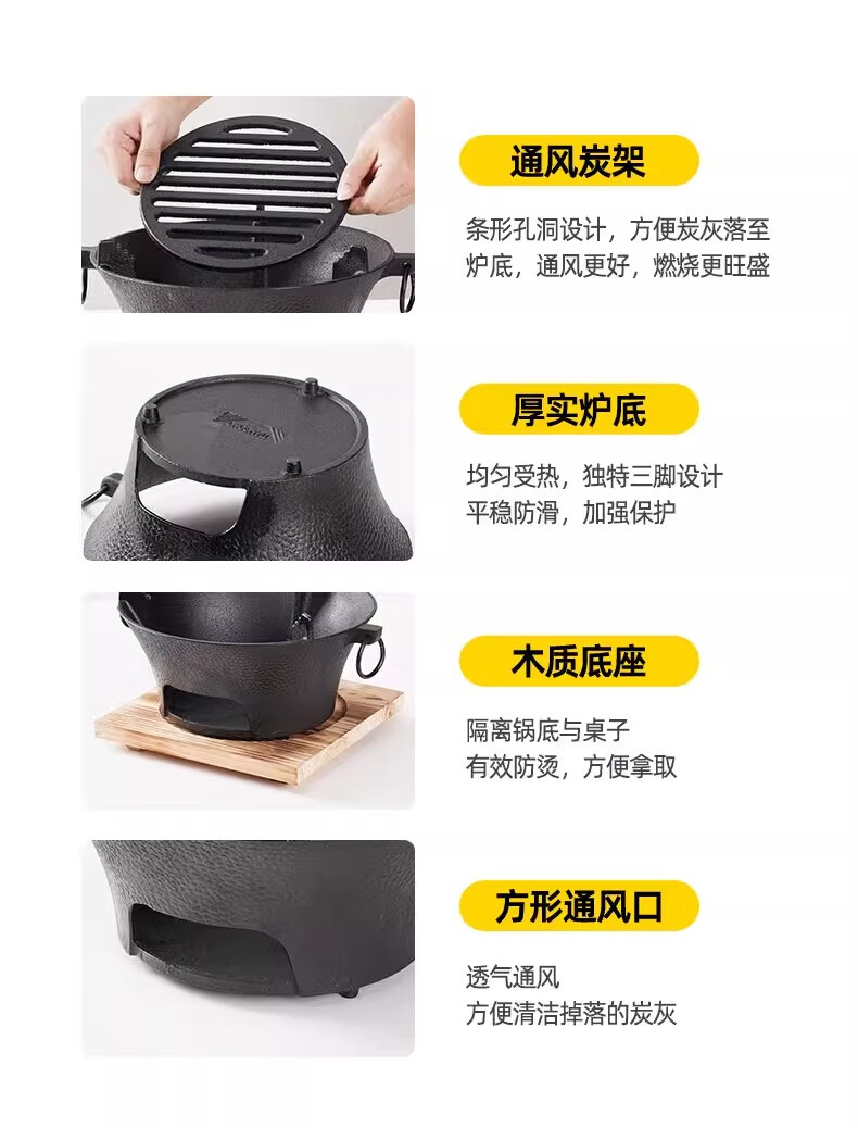 山头林村铸铁炭炉室内取暖老式炉子火炉生铁户外木炭柴火灶围炉煮茶烧碳 加高款25CM炭炉+不锈钢烤网