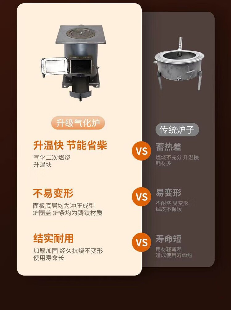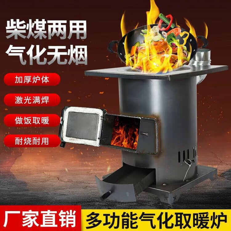 无烟气化新款炉子家用烧煤烧柴气化炉新款取暖做饭一体炉二次反烧 多功能气化反烧取暖做饭炉