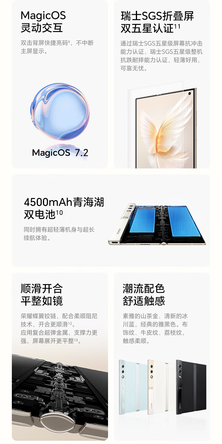 荣耀【全套原装】荣耀 V Purse 激 活16+256G折叠屏 8.6mm超轻薄大屏 山茶金 16+256 正品国行