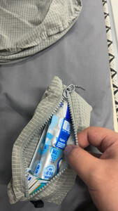 样子很好,然后大小也不错,我装了一些纸巾湿厕纸口罩,酒精粘,还有马桶一次性坐垫,然后放了我的睡眠眼罩和耳塞,具体就是可以作为一个功能包装一些需要外出用的或者徒步用的一些小东西还是挺方便的,而且他有一个挂钩,到时候可以挂在包里头和包外面,我觉得具体来说这个包还是不错的值这个钱。