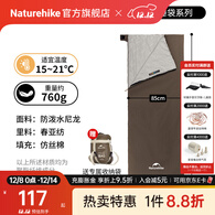 Naturehike挪客迷你信封式睡袋薄款夏季户外露营酒店隔脏被超轻便携野营单人 15-18℃加大款/广寒棕/可拼接