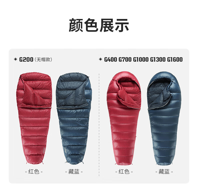 黑冰羽绒睡袋户外G400G700G1000G1300鹅绒露营超轻睡袋可拼接情侣 新标准蓝色G400-联系客服优惠 M-174身高以下