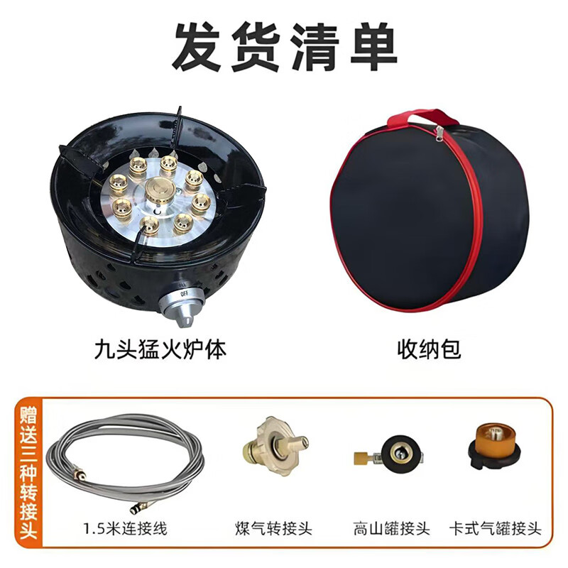 双幼户外九星炉猛火七星炉便捷式露营摆摊车载多用途做饭烧水防风炉灶 黑色9星1台 送煤气/高山气/卡式