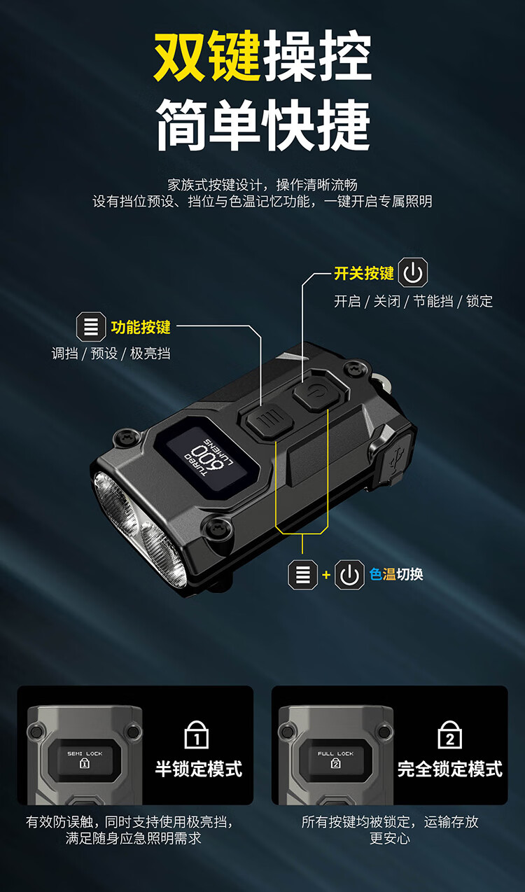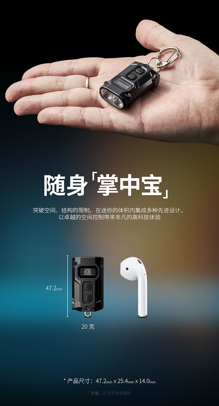 奈特科尔TINI太适合当EDC了!航空铝机身质感好,挂钥匙串上才20g左右完全不赘。600流明亮度够日常用,多色温能切换,Type-C充电也方便,IP54防水抗摔,小身材超实用。