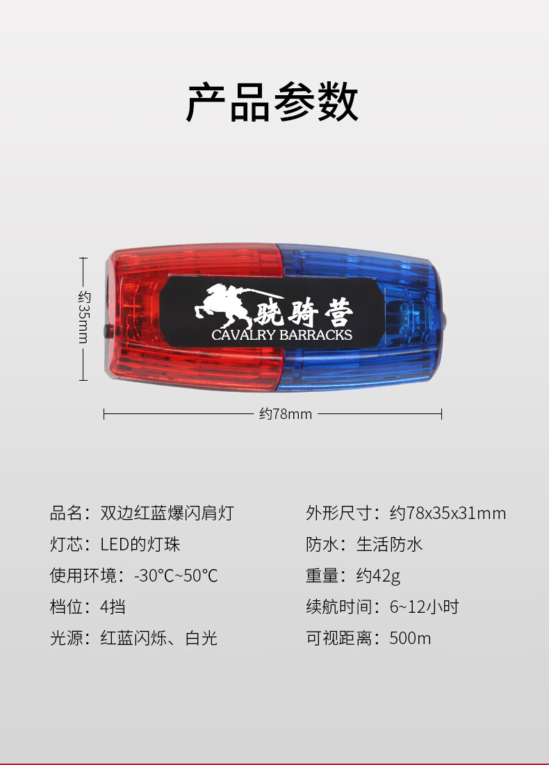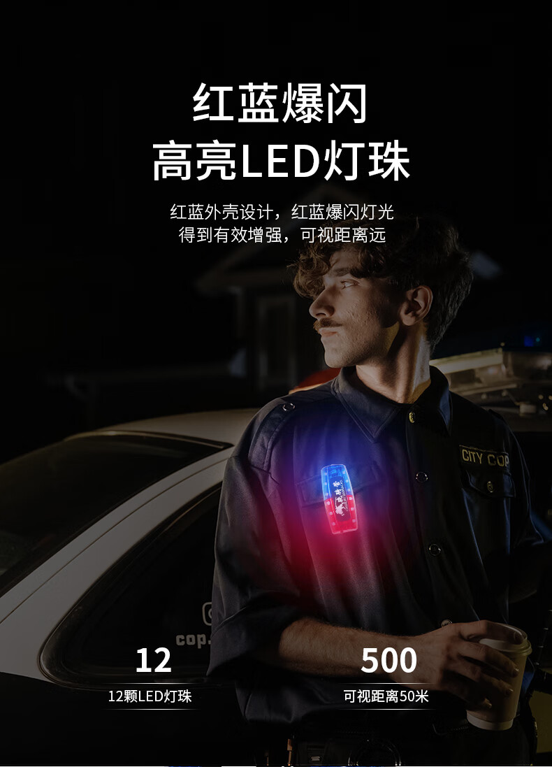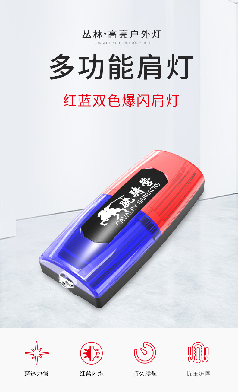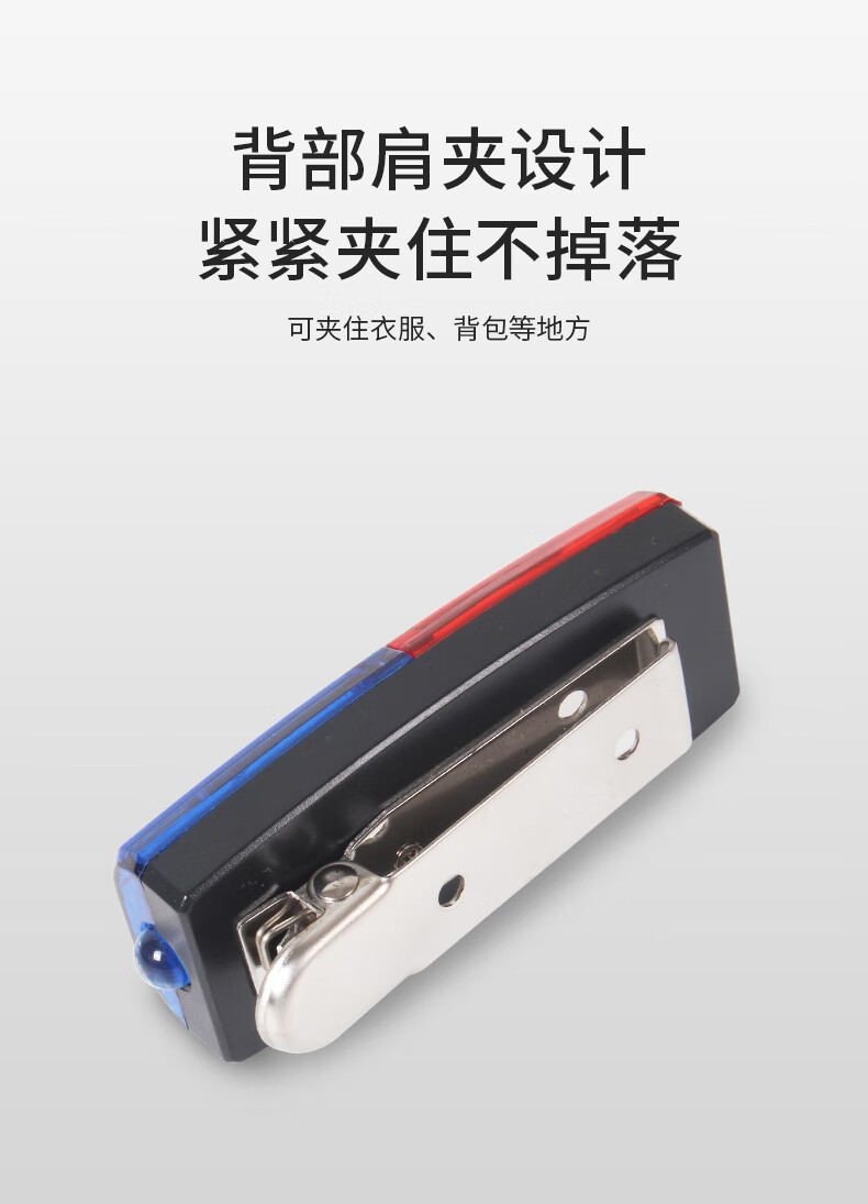 久盾充电肩灯LED红蓝爆闪光巡逻执勤保安救援夜间跑步照明肩夹信号灯 双层肩灯