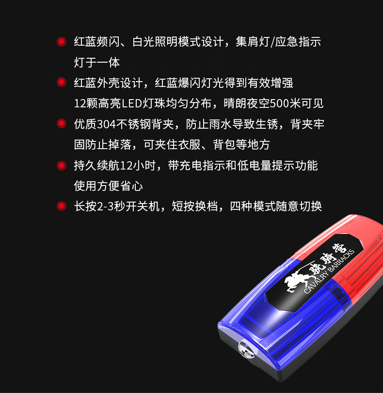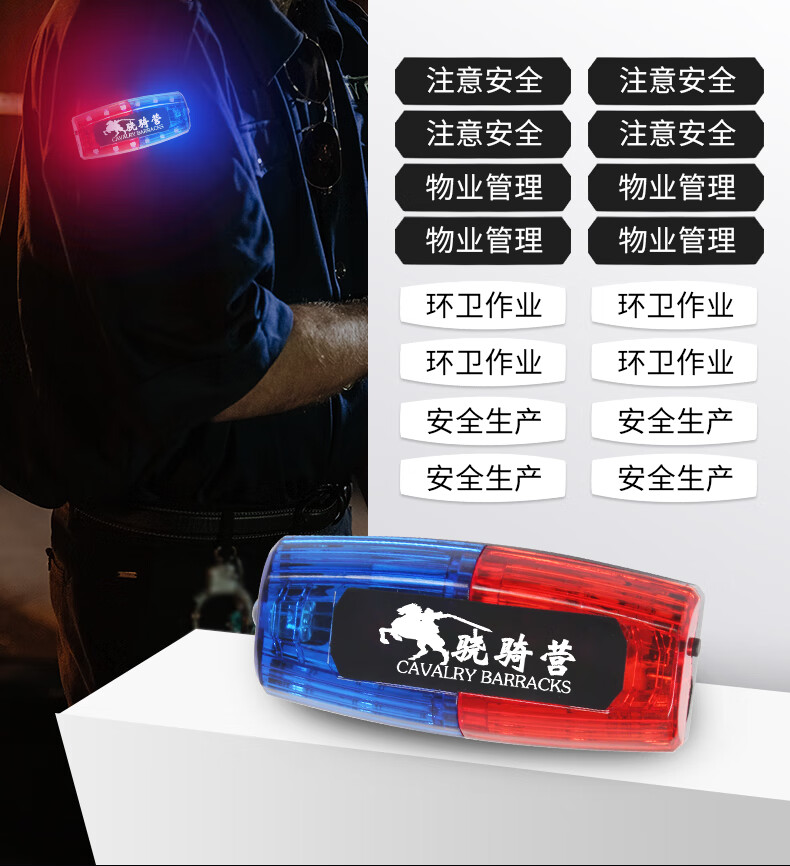 骁骑营双排肩灯红蓝爆闪警示灯多功能巡逻执勤照明支持图文定制 充电款肩灯-黑底(执勤)