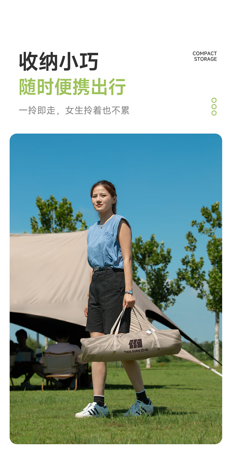 探险者(TAN XIAN ZHE)天幕帐篷户外露营车载便携六角防晒速开懒人天幕野营遮光遮阳棚 【舒适出行】30㎡天幕+月亮椅套装+推车