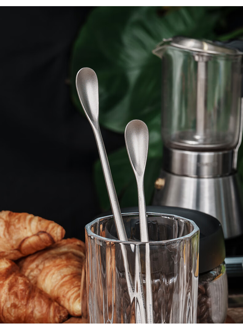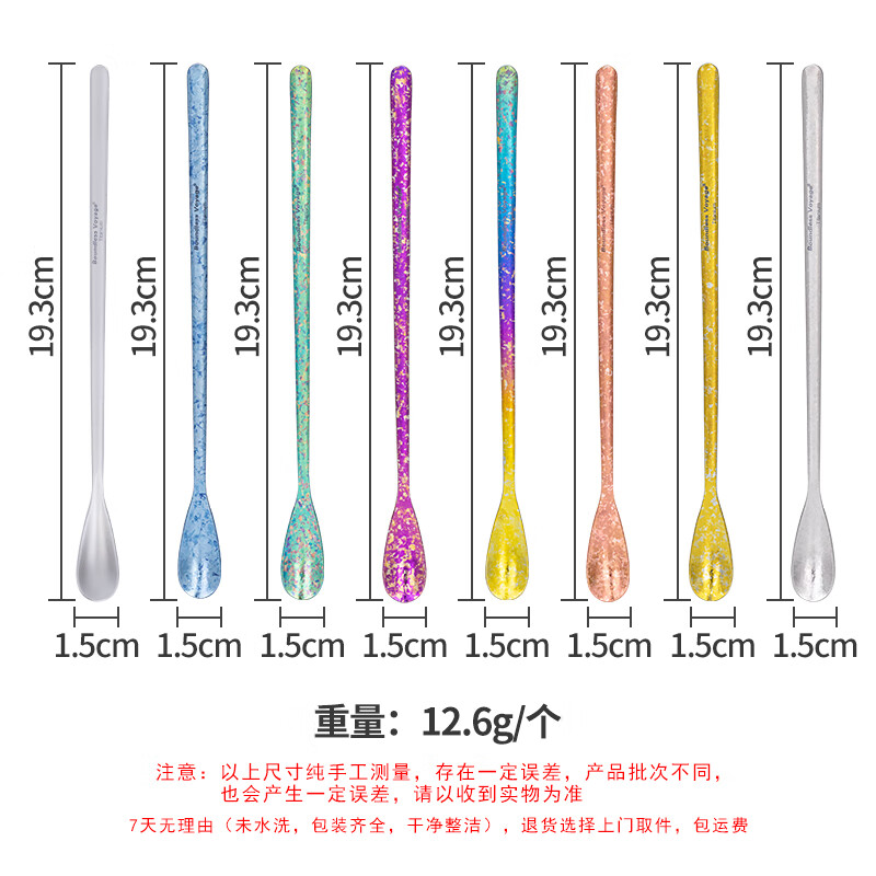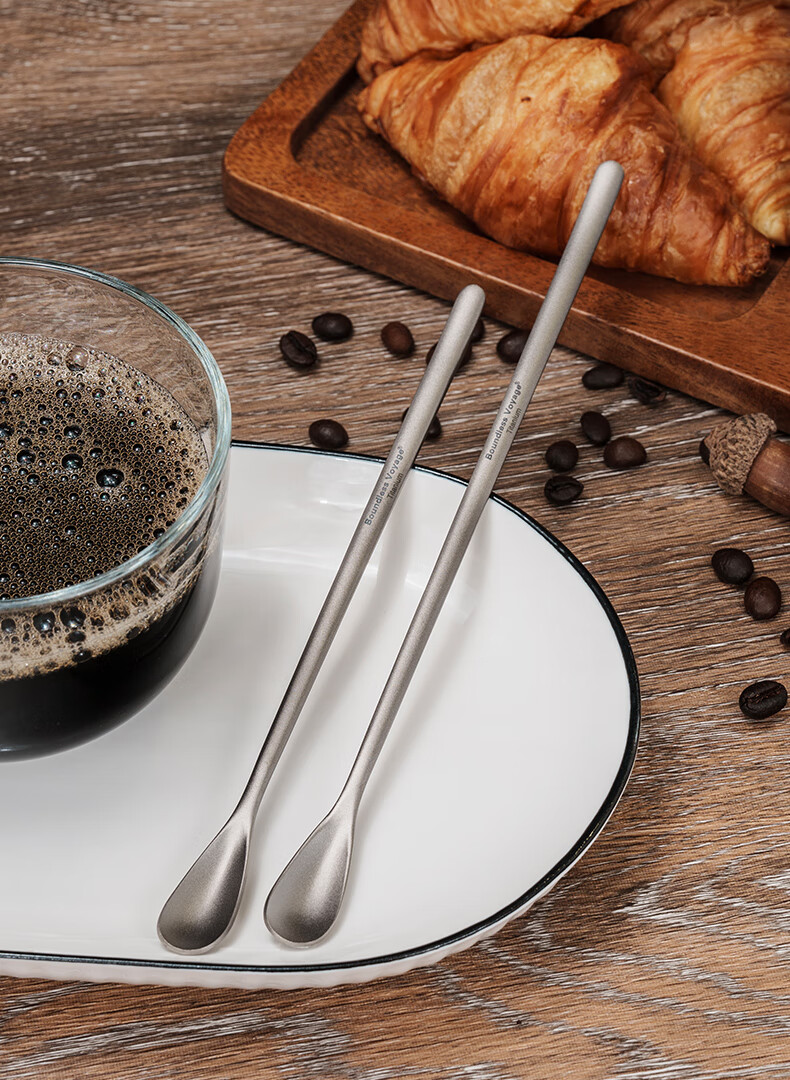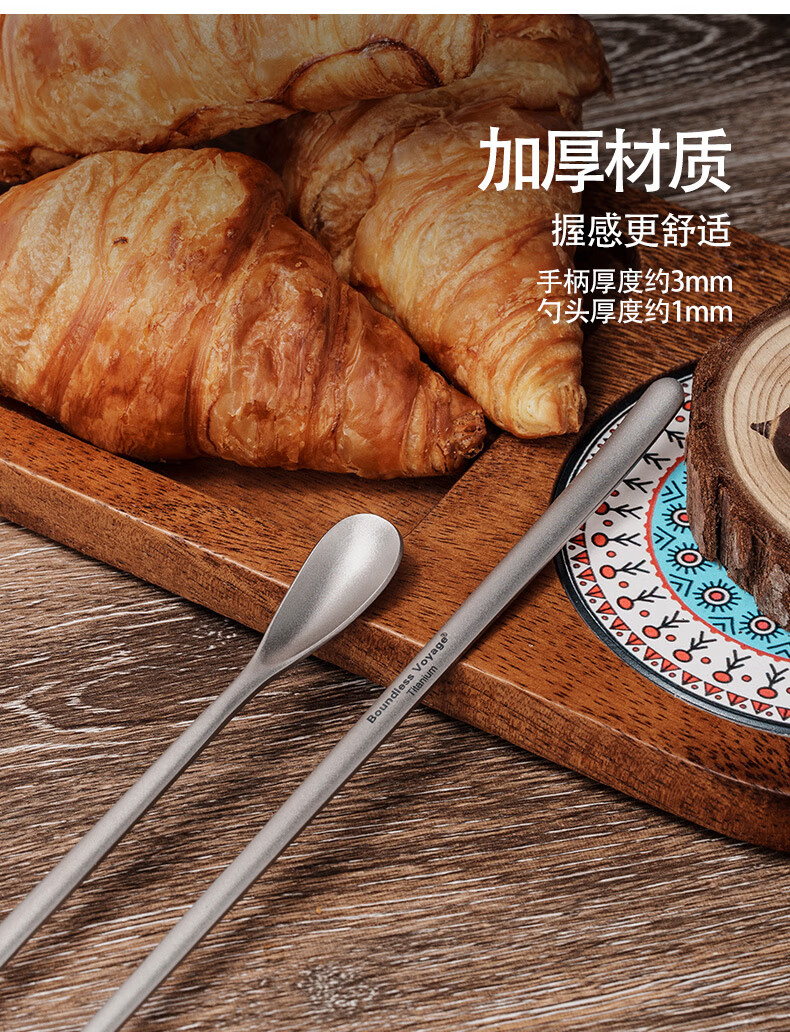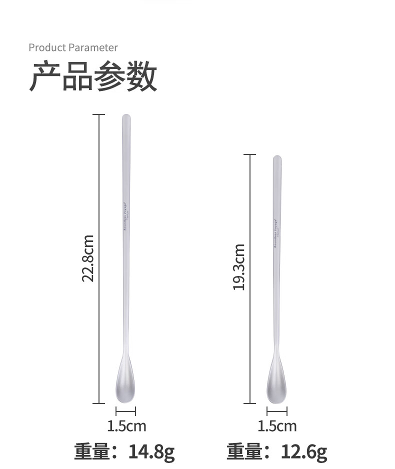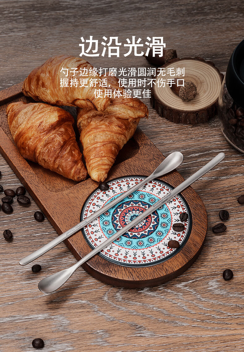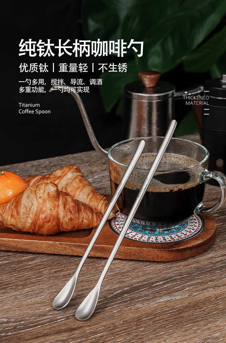 Ti artisan钛工匠户外钛餐具纯钛野营餐具长柄咖啡勺子搅拌加长金属甜品钛勺 Ta8119f长柄勺喷砂款
