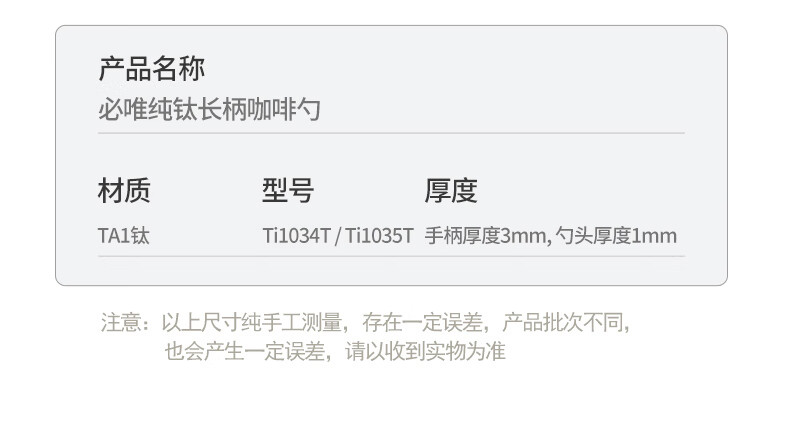 必唯纯钛户外长柄咖啡勺精致小巧轻奢高级感加长 Ti1034T 短勺 钛色