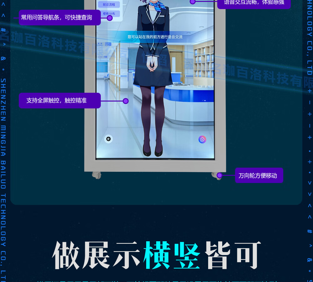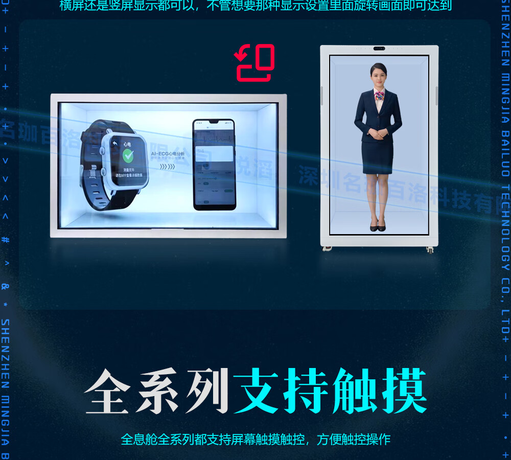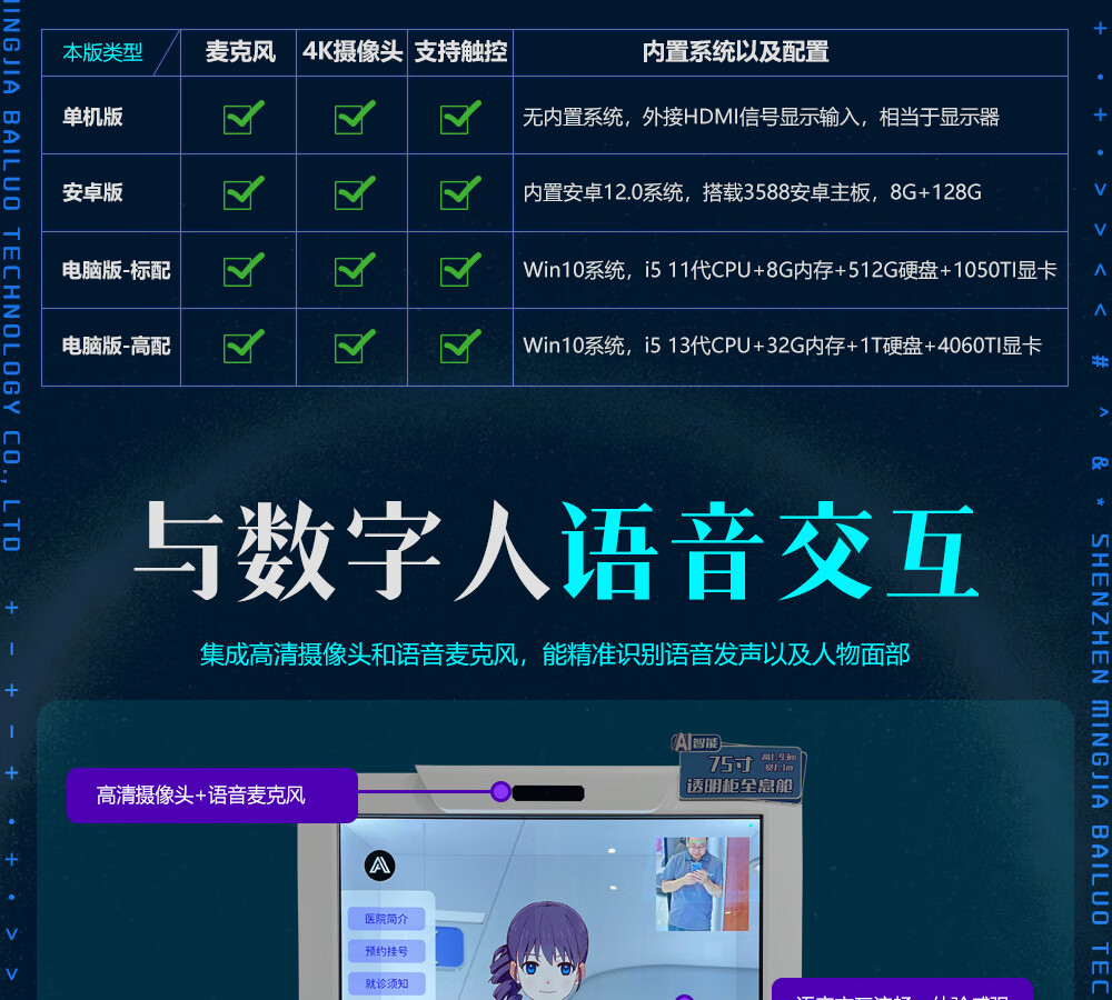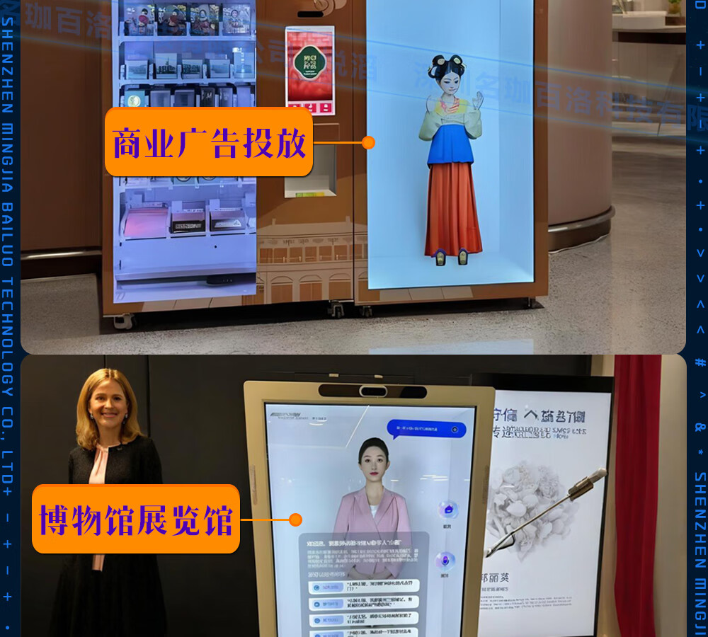 数字人交互全息舱移动方便,屏幕透光率也非常好,可以输出4K信号,数字人应用体验感拉满