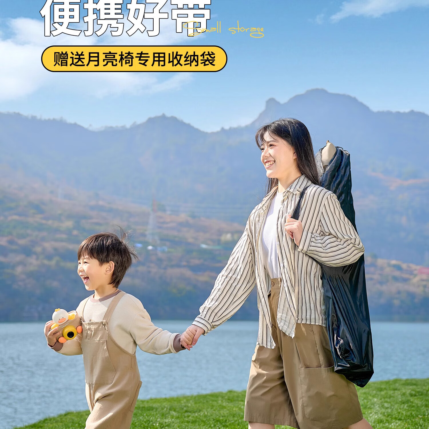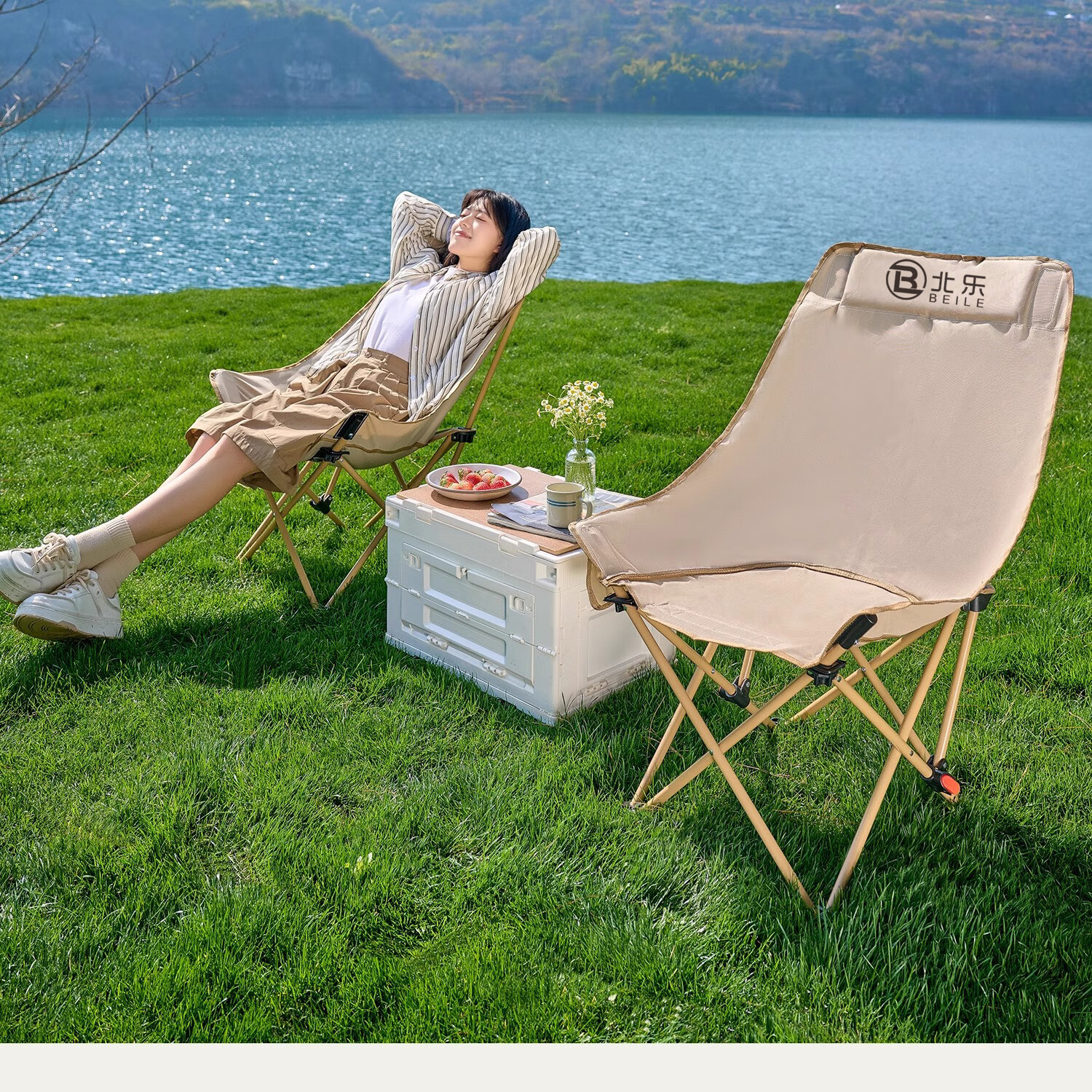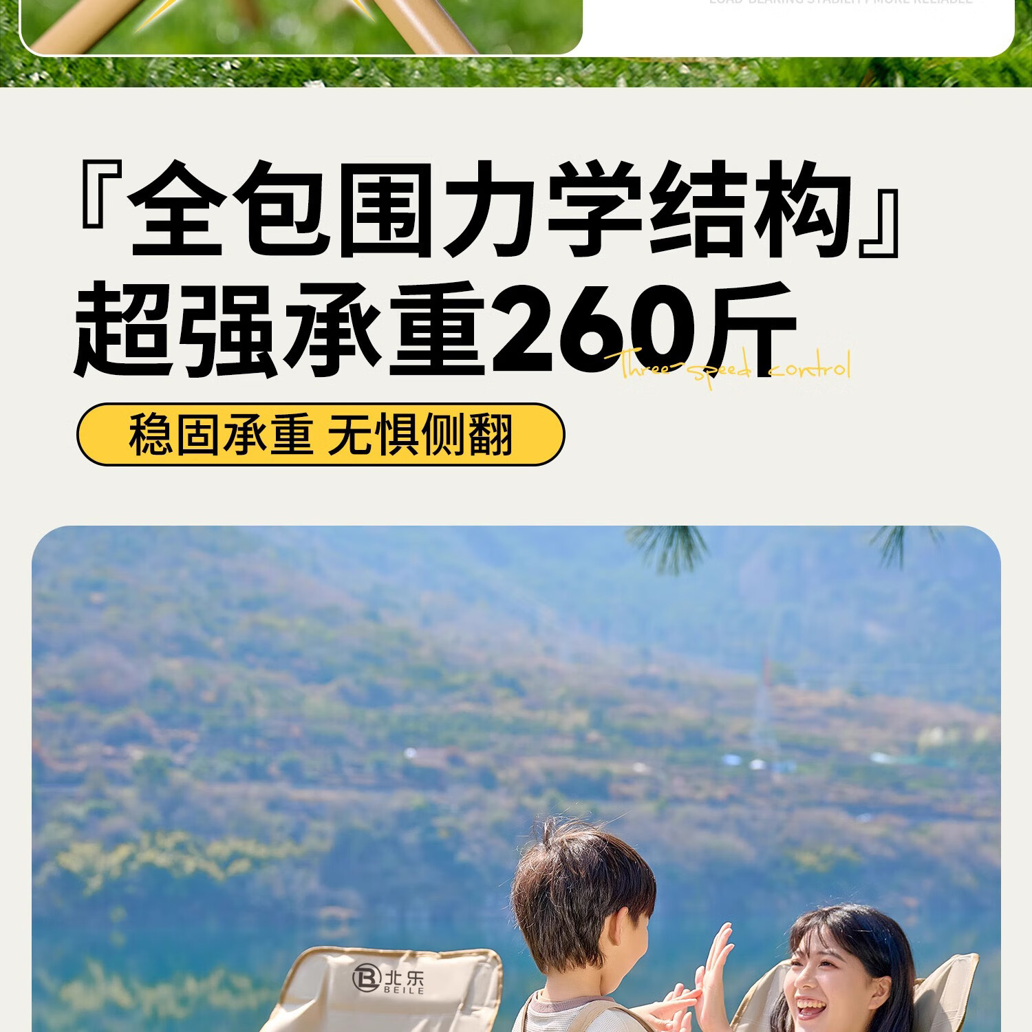 北乐户外折叠椅月亮椅露营椅子便携式钓鱼沙滩野餐高背椅躺椅折叠凳子 【经典款-大号】+加粗钢管+磨砂黑