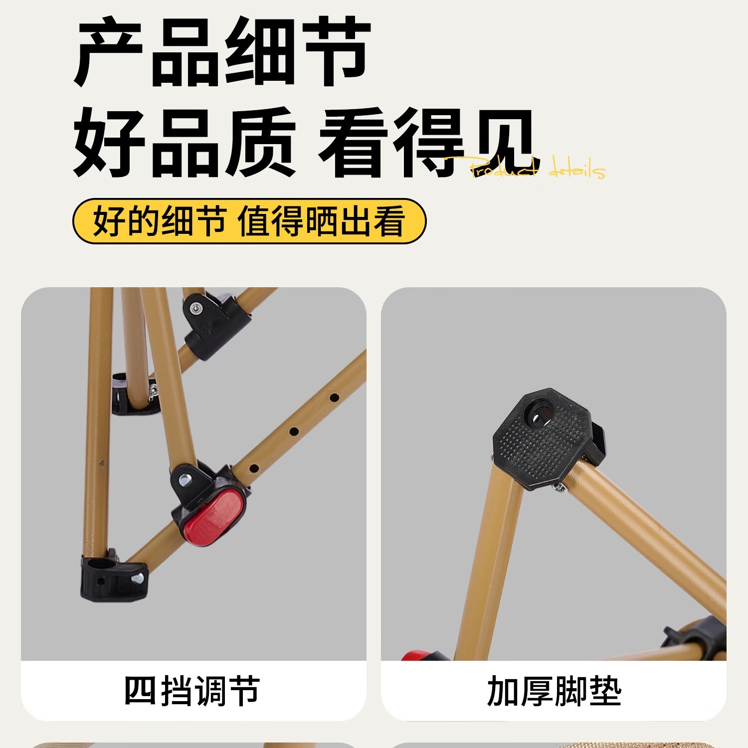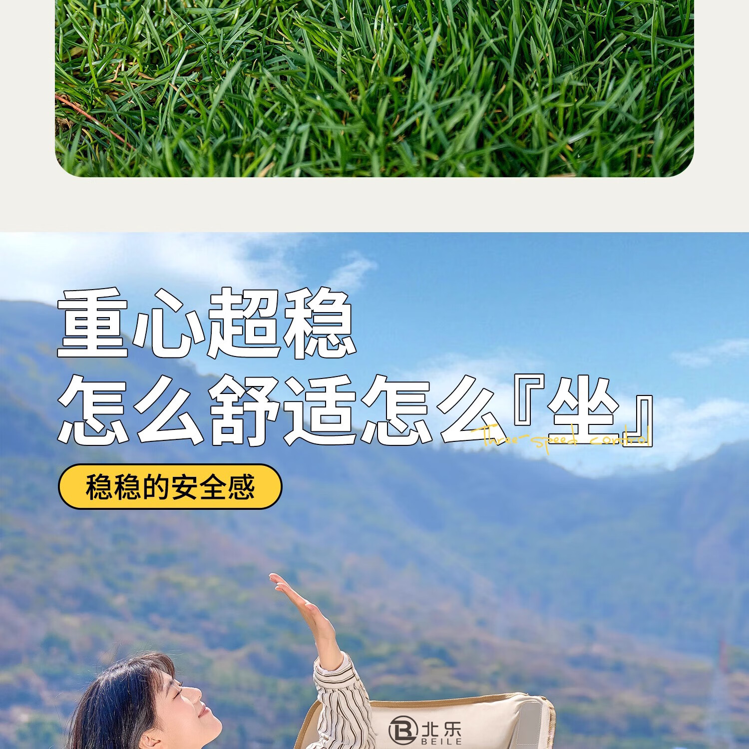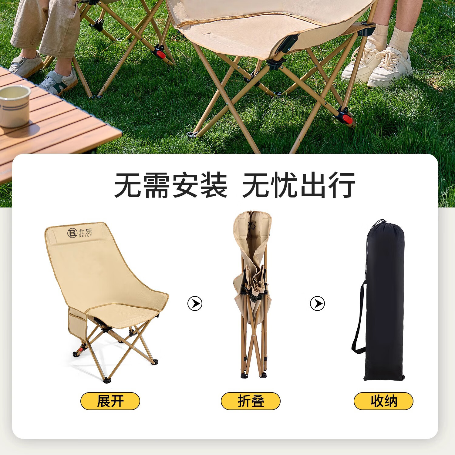 北乐户外折叠椅月亮椅露营椅子便携式钓鱼沙滩野餐高背椅躺椅折叠凳子 【经典款-大号】+加粗钢管+磨砂黑