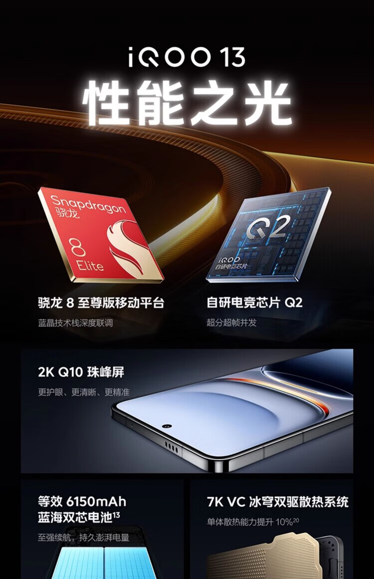 vivoiQOO 13 骁龙8至尊版移动平台 自研电竞芯片 Q2 2K 5G电竞手机 传奇版 16GB+1TB 官方标配