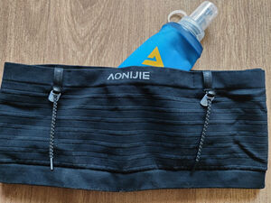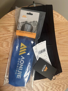 很不错的腰包。还有一个250ml的水壶,天气越来越暖和了,腰包和水壶都是跑步必不可少的装备,这个腰包后面还能放登山杖,前面可以挂号码薄比赛带他就方便多了,推荐。