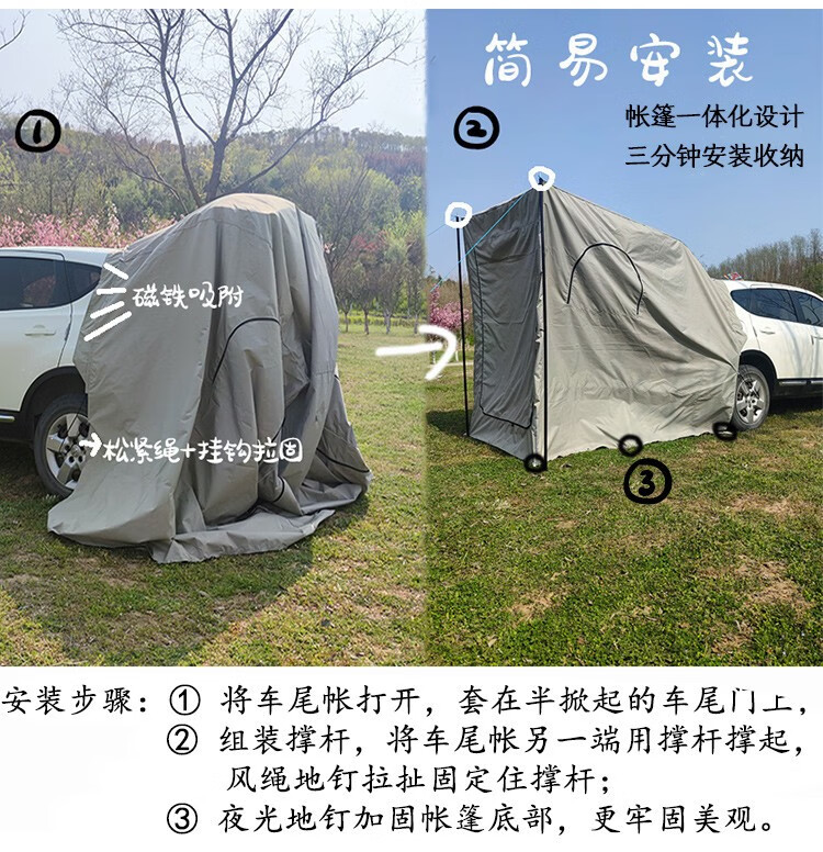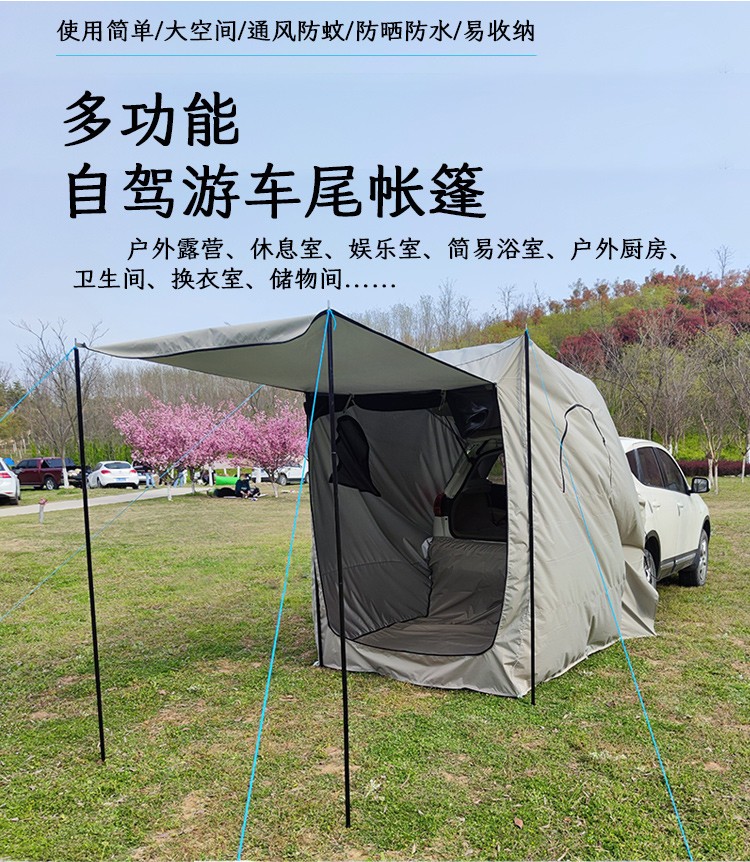 户外多功能汽车延伸车尾帐篷自驾游野露营越野车后备箱车载防晒 暖灰色