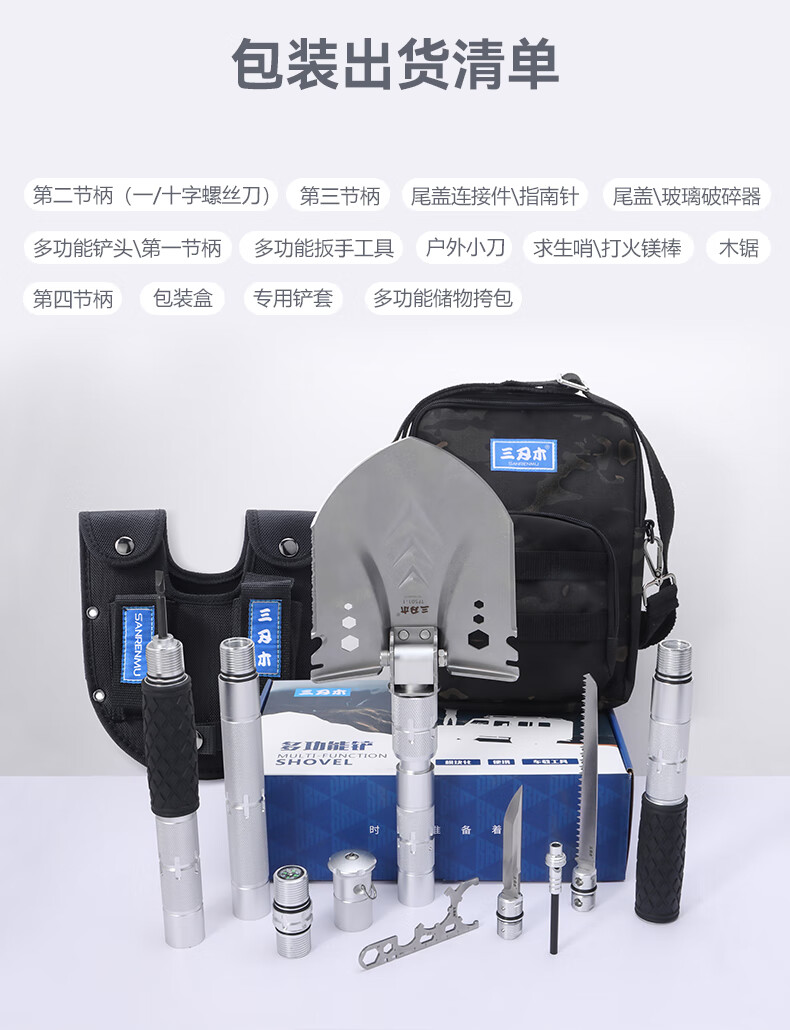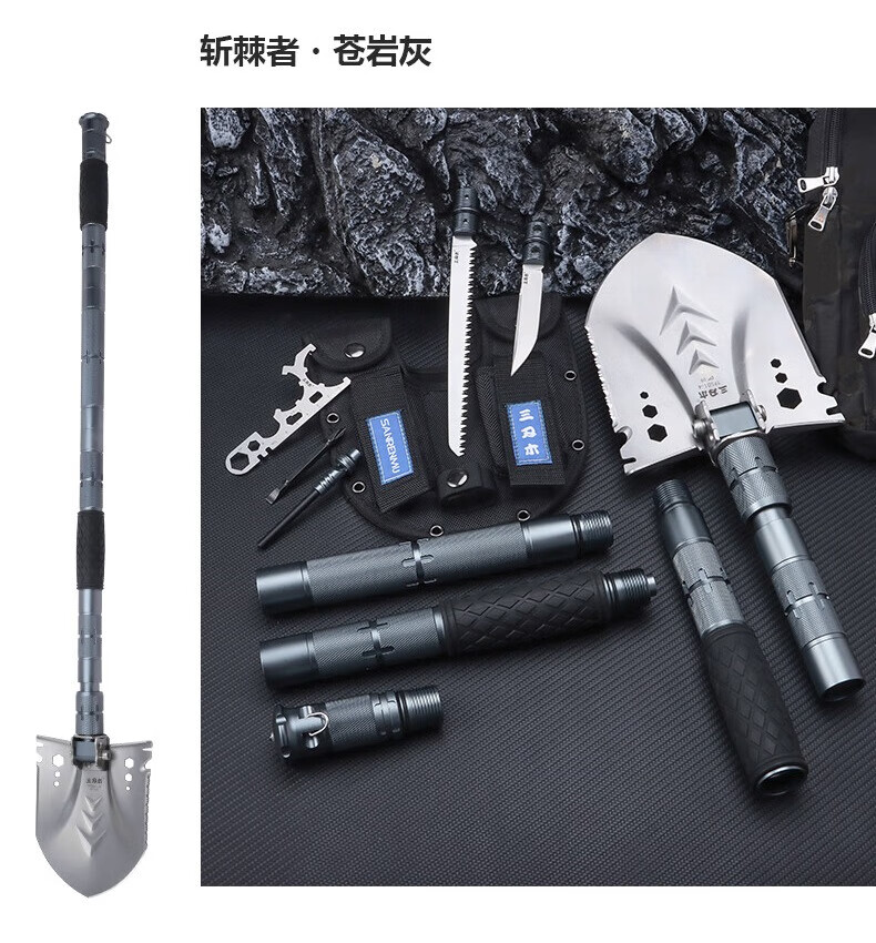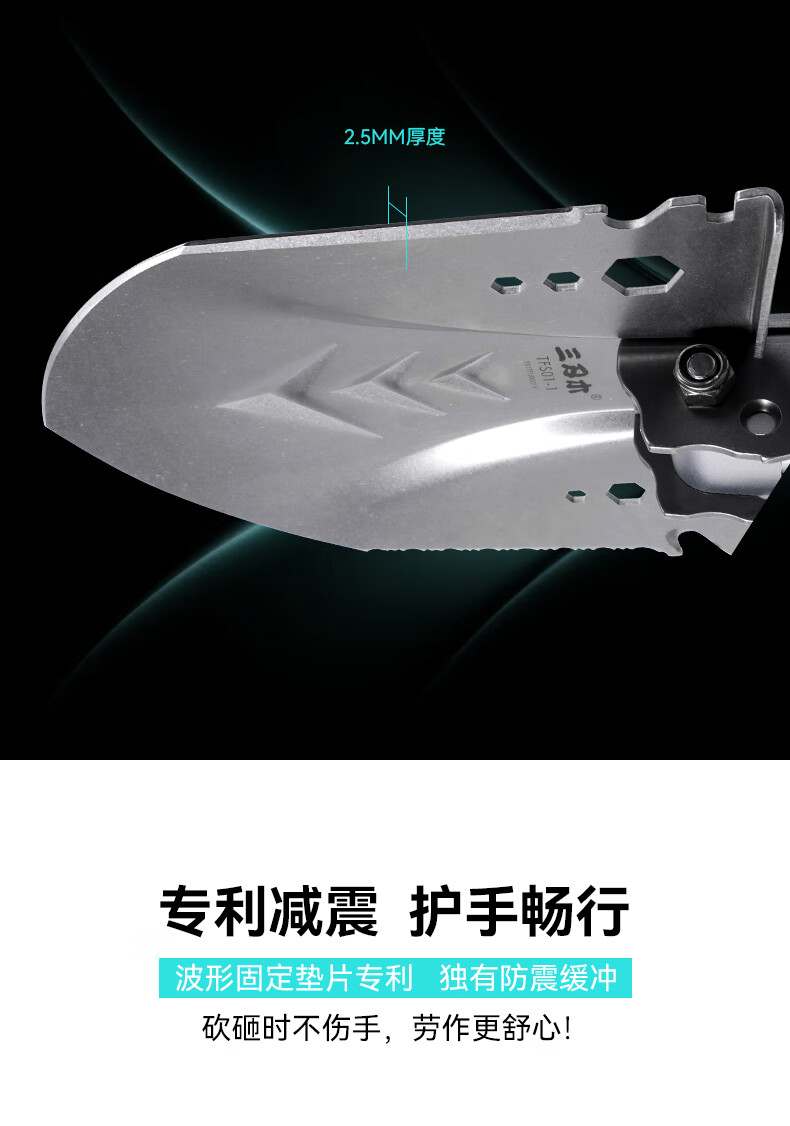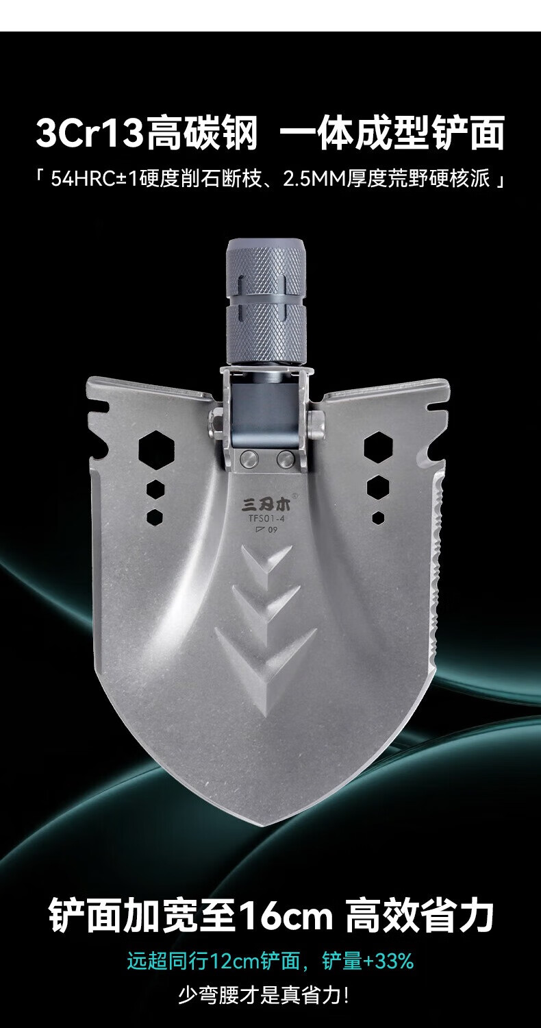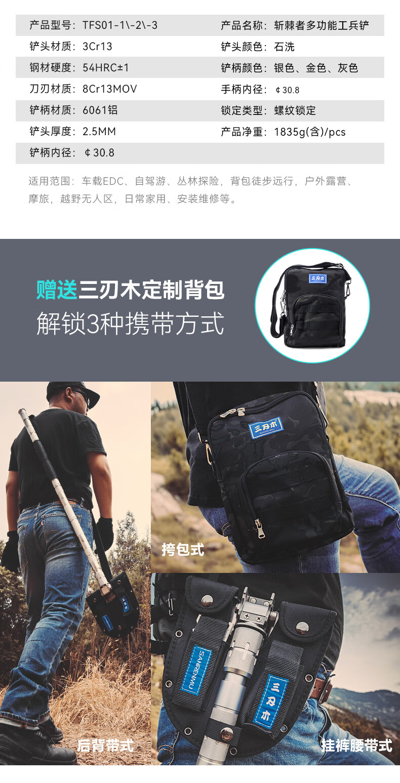 三刃木工兵铲多功能折叠户外兵工手铲子中国车载锰钢加厚铁锹钓鱼TFS01 TFS01-3蓝灰色