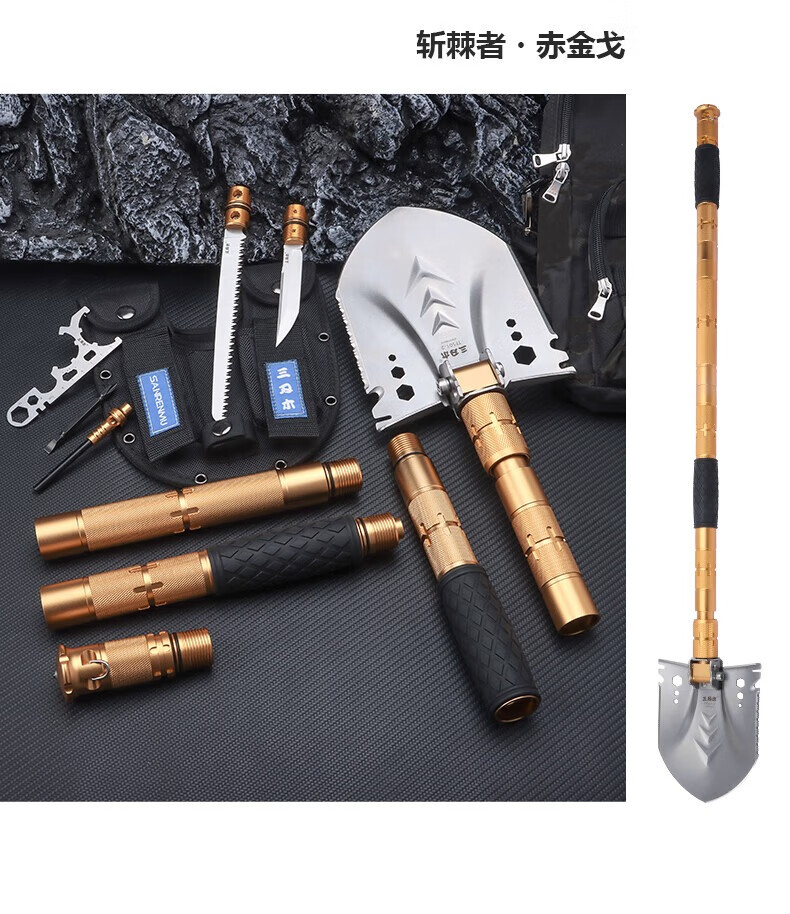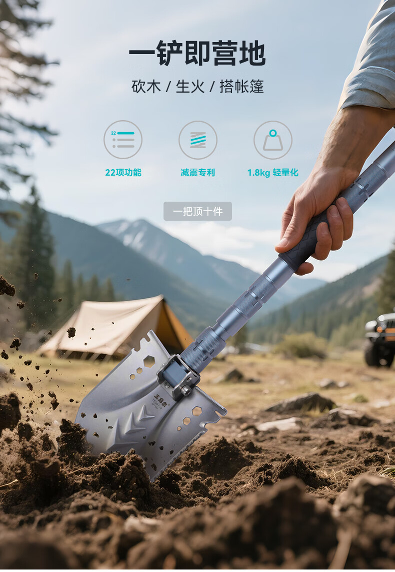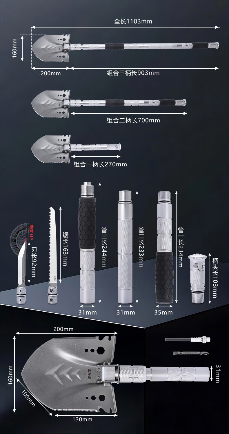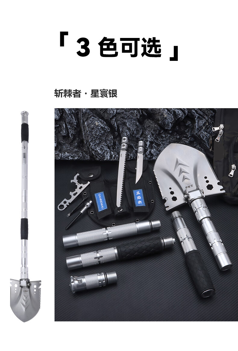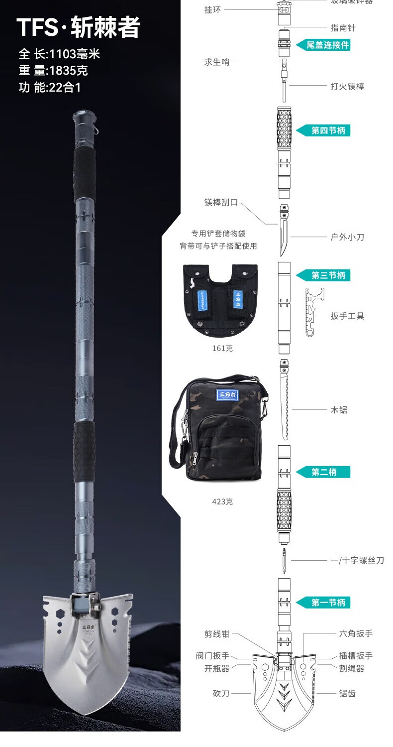三刃木工兵铲多功能折叠户外兵工手铲子中国车载锰钢加厚铁锹钓鱼TFS01 TFS01-3蓝灰色