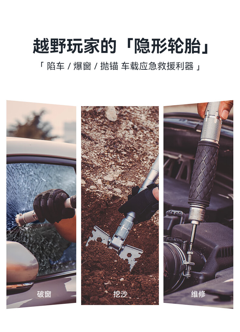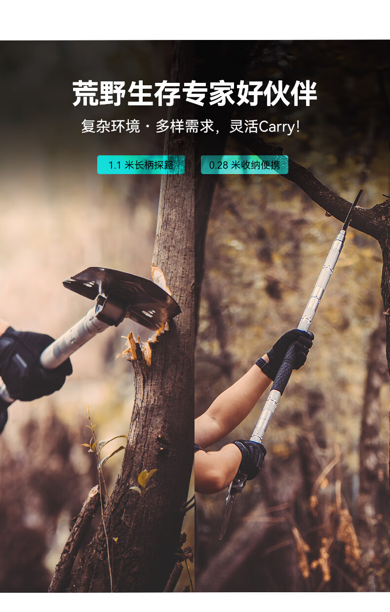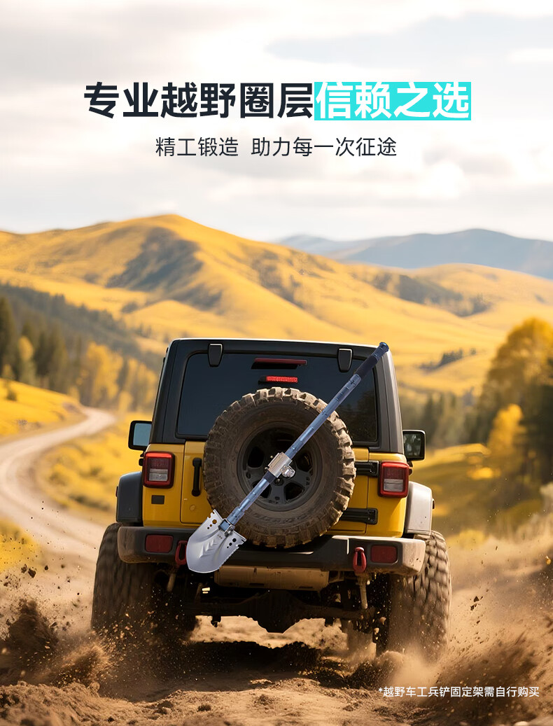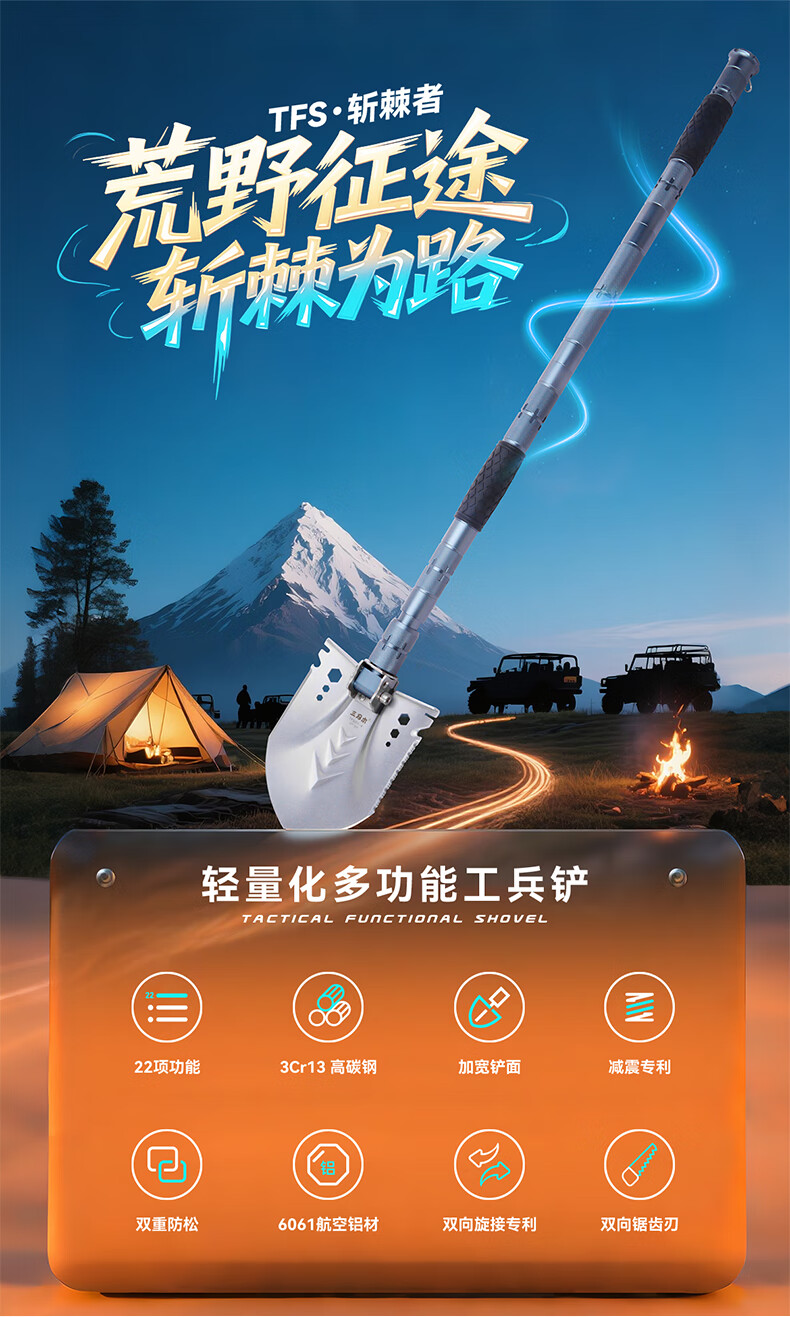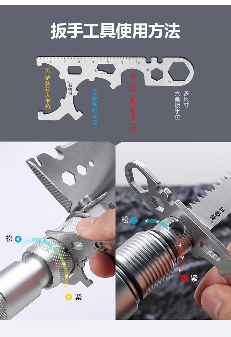 三刃木工兵铲多功能折叠户外兵工手铲子中国车载锰钢加厚铁锹钓鱼TFS01 TFS01-3蓝灰色