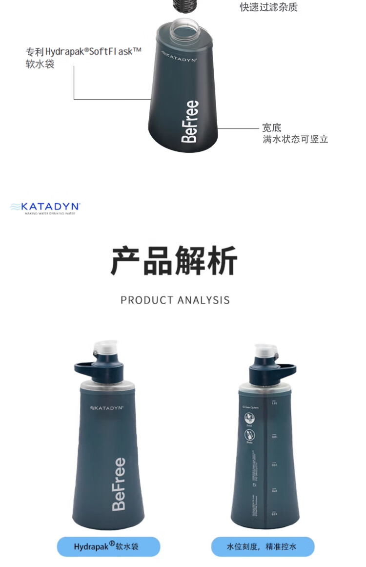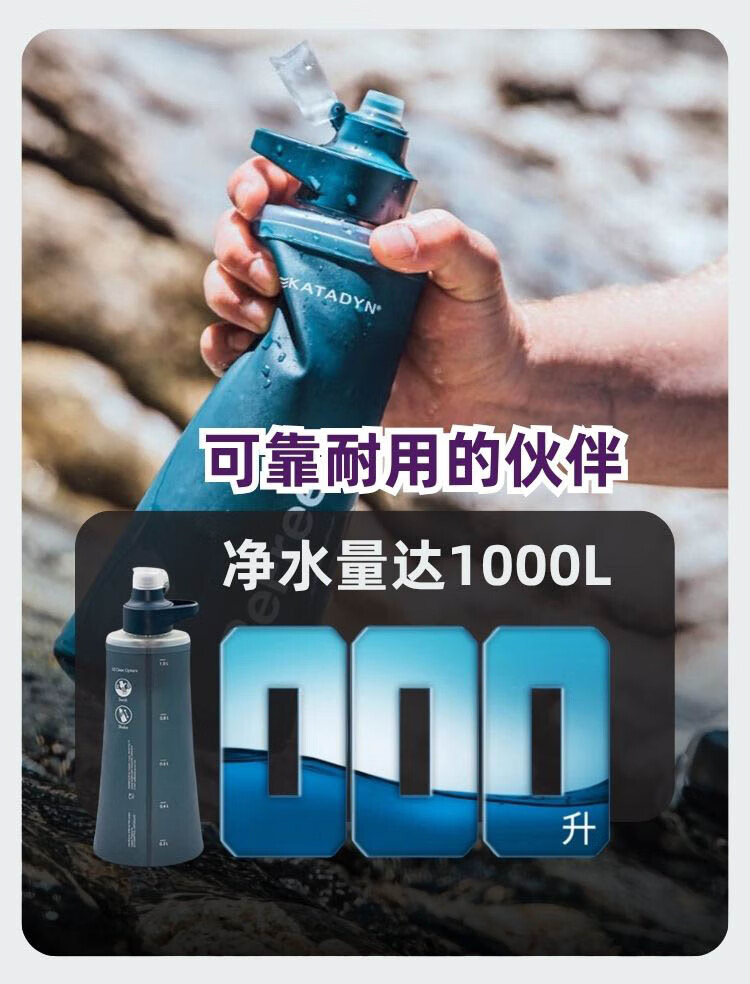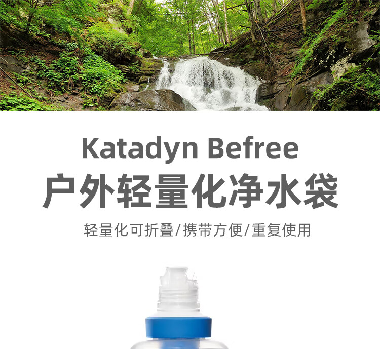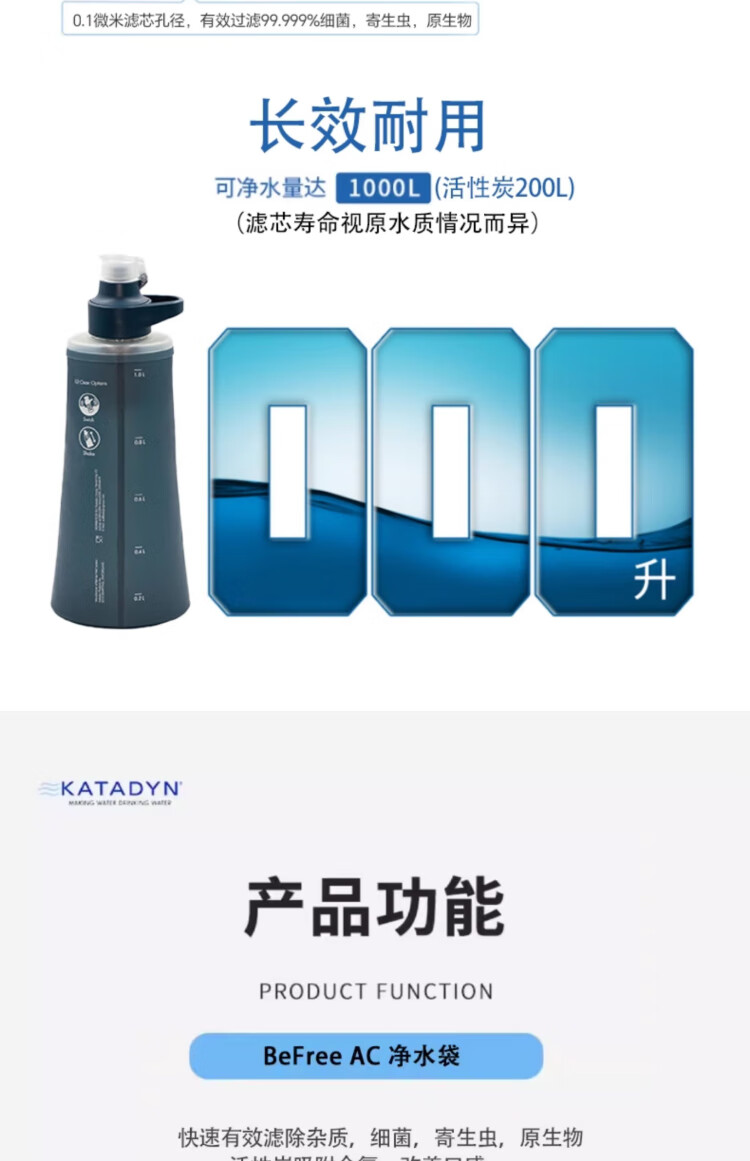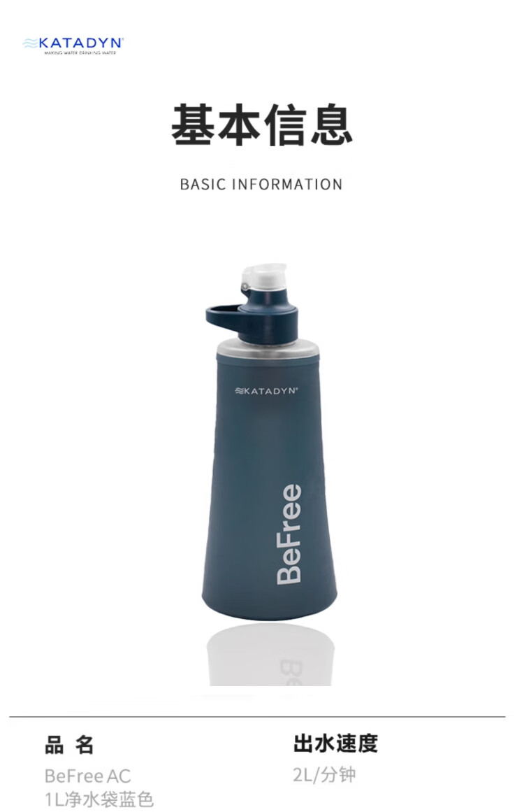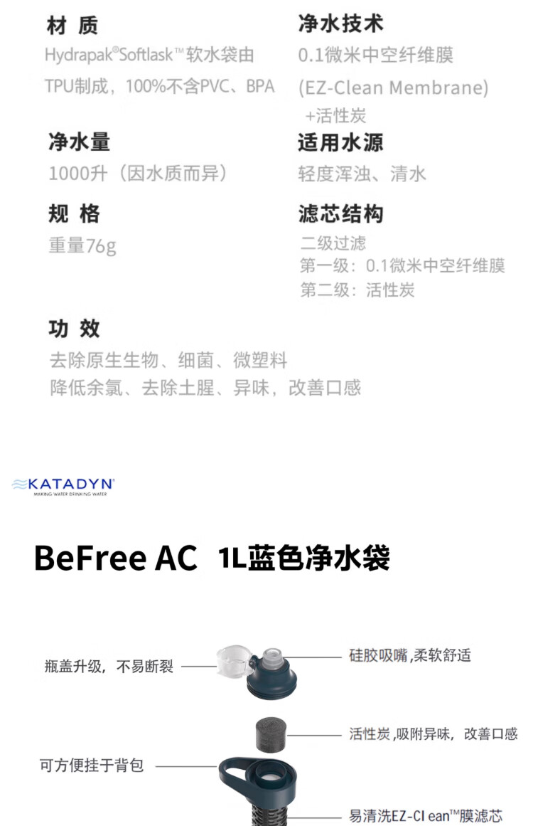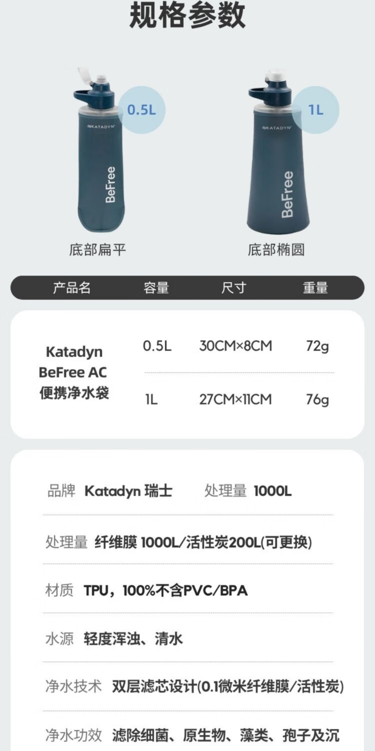 KATADYN瑞士康迪徒步BeFree 0.6L超轻野外便携式滤净水袋户外折叠软水杯 1L蓝色净水袋 AC底部椭圆 【含原装滤芯 双重过滤】