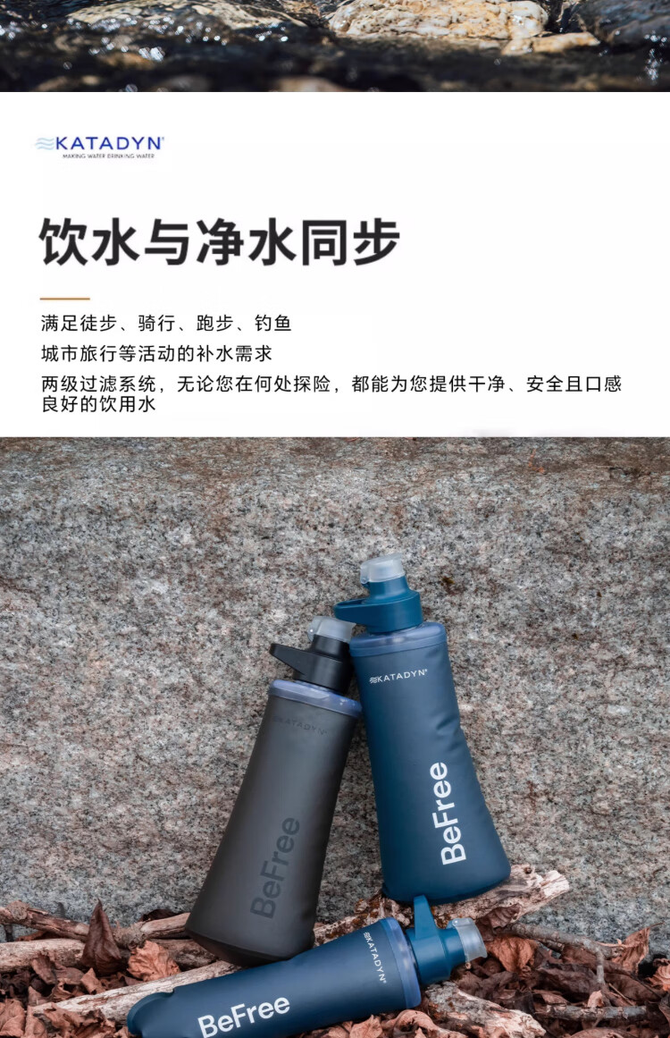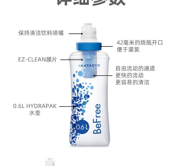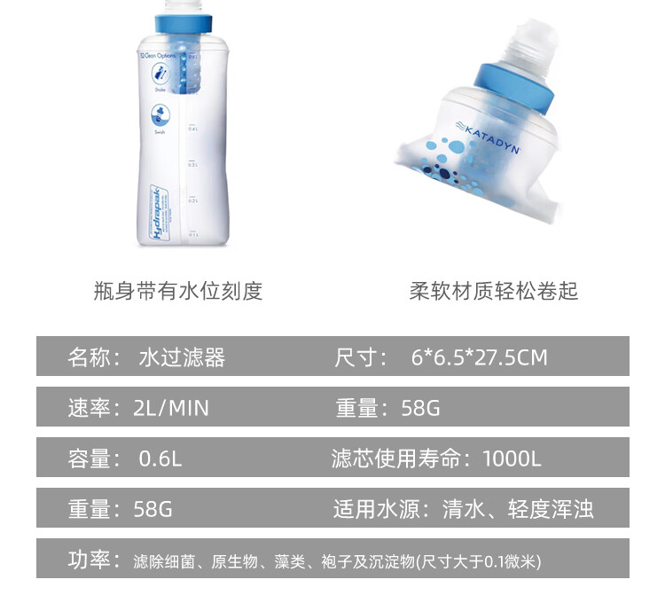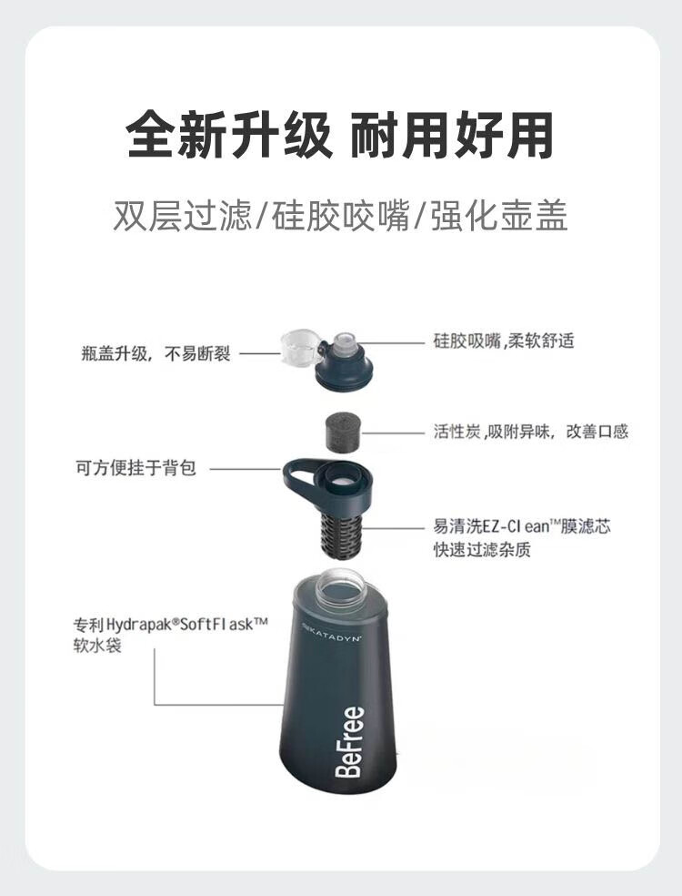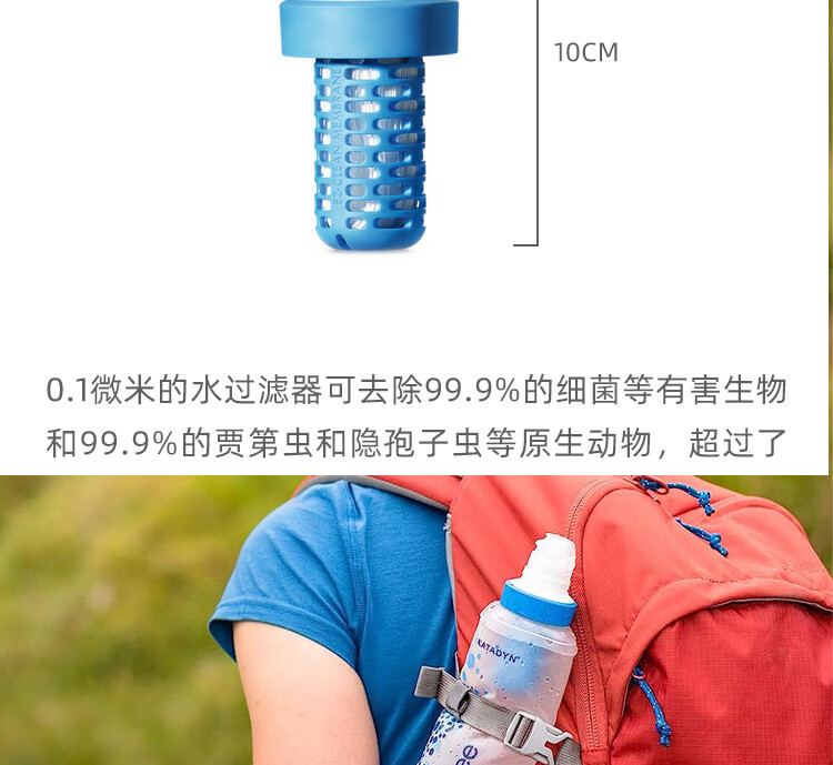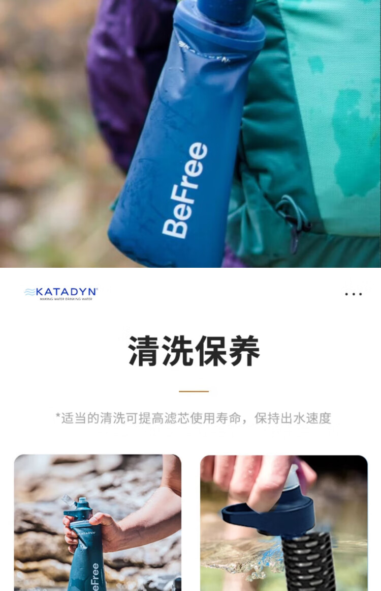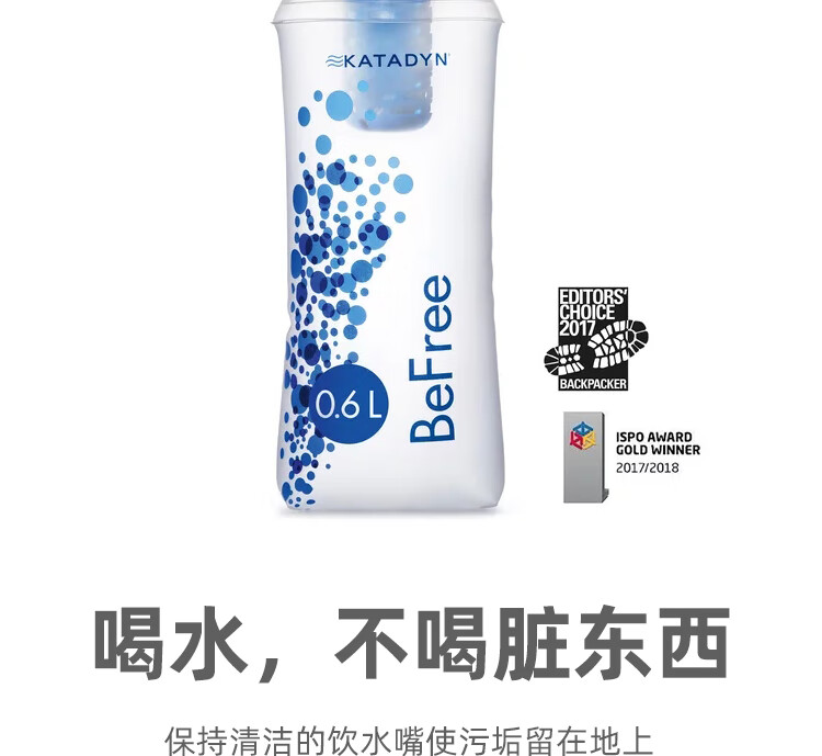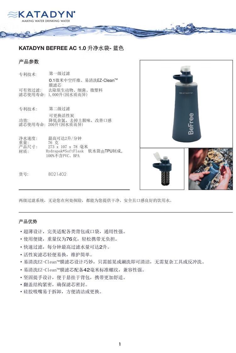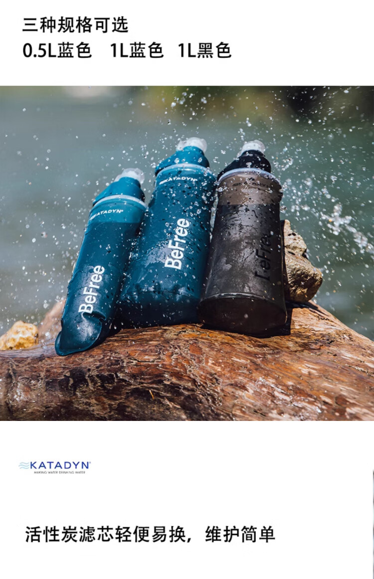 KATADYN瑞士康迪徒步BeFree 0.6L超轻野外便携式滤净水袋户外折叠软水杯 1L蓝色净水袋 AC底部椭圆 【含原装滤芯 双重过滤】