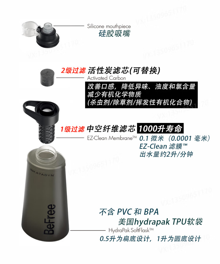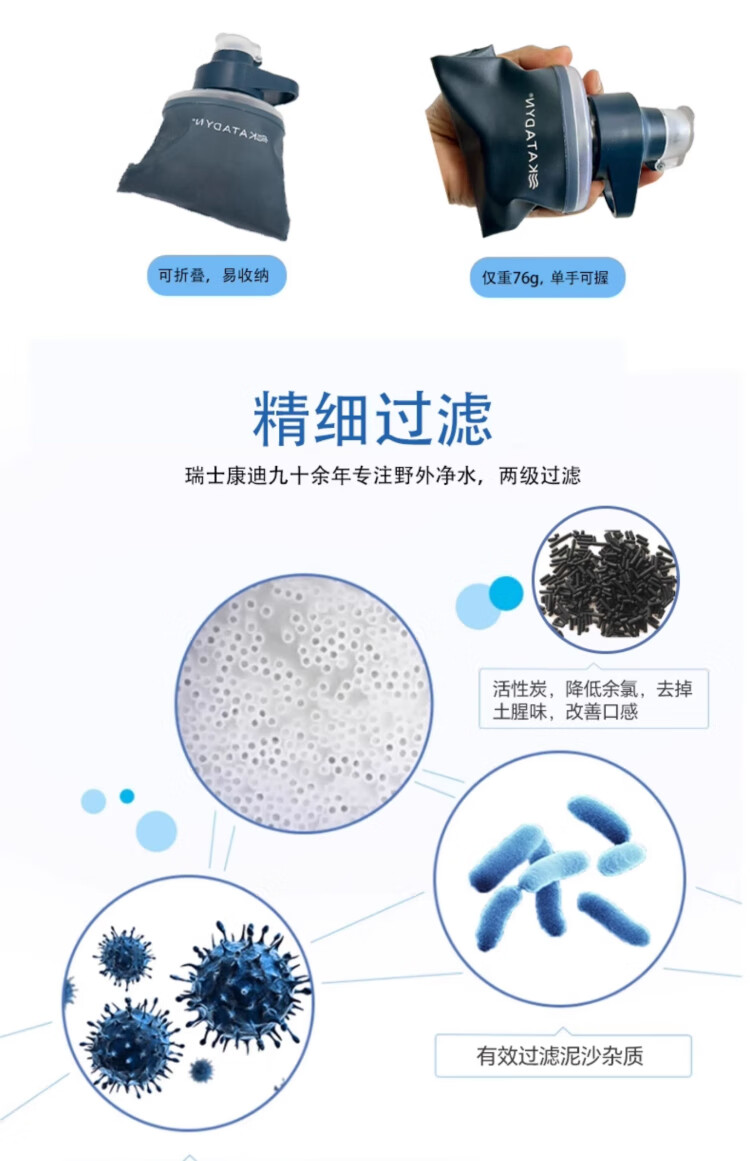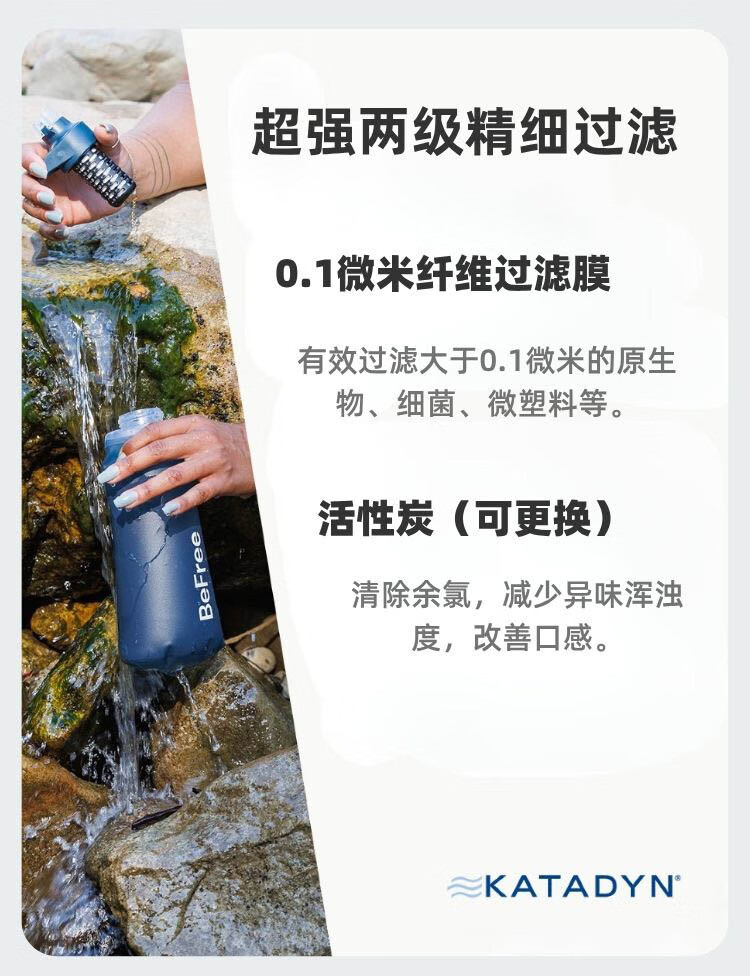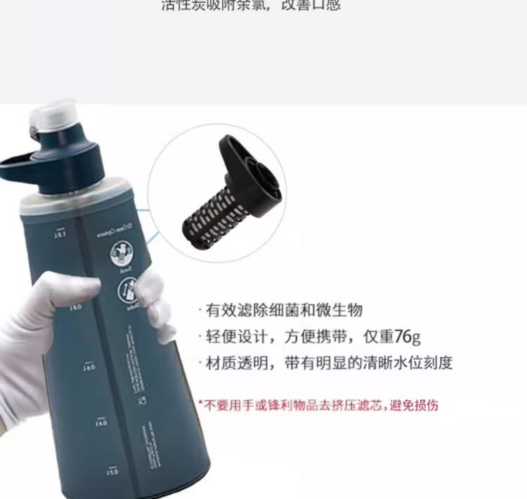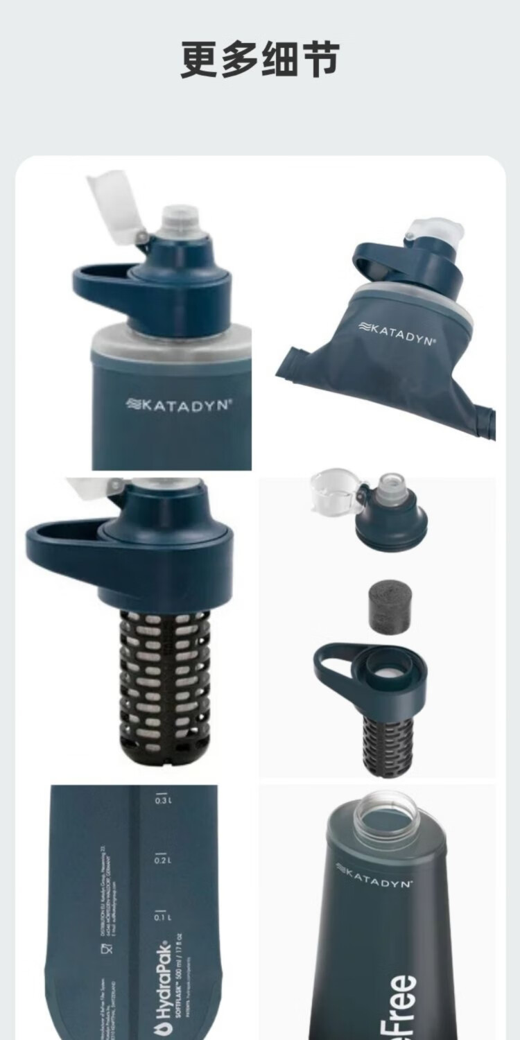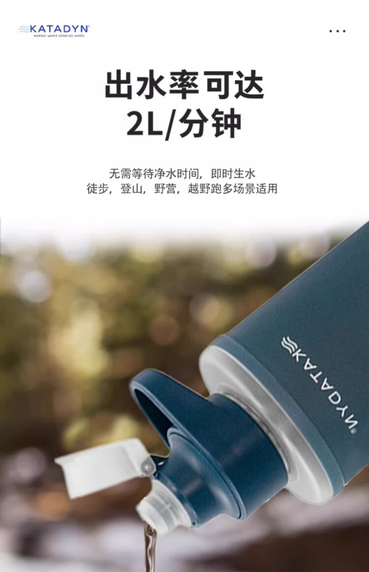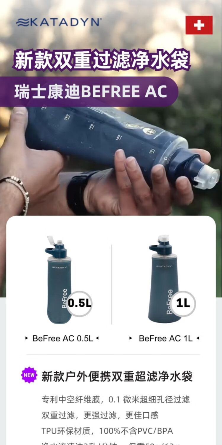 KATADYN瑞士康迪徒步BeFree 0.6L超轻野外便携式滤净水袋户外折叠软水杯 1L蓝色净水袋 AC底部椭圆 【含原装滤芯 双重过滤】