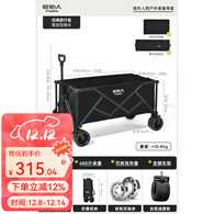 原始人(The Primitive)露营车推车户外营地拖车超大折叠手推野餐野营手拉车遛娃小拉车 175L 耀黑-加宽万向轮+双刹双轴承