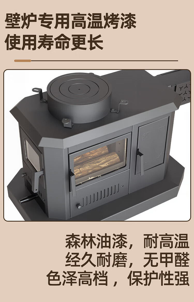 昊燃 室内烤火炉柴煤两用回风炉农村取暖器家用煤炭烧柴不锈钢炉子 A款柴煤烤火炉90*90*64(高)