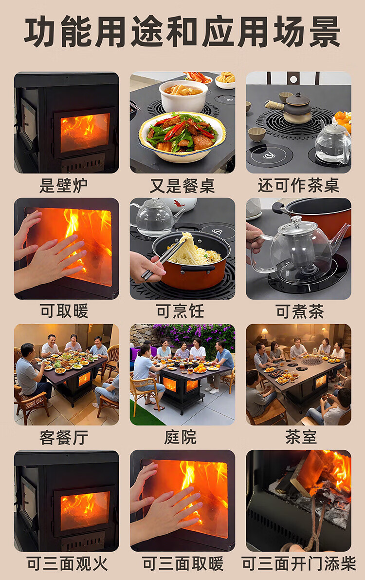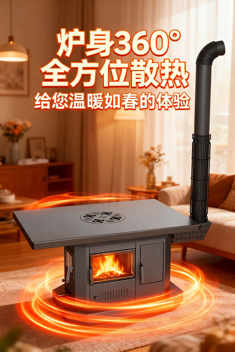 璞灶旺回风炉农村家用取暖柴火炉煤火炉柴煤两用炉多功能烤火桌节能取暖 0.8米钢化玻璃桌面 柴煤两用炉