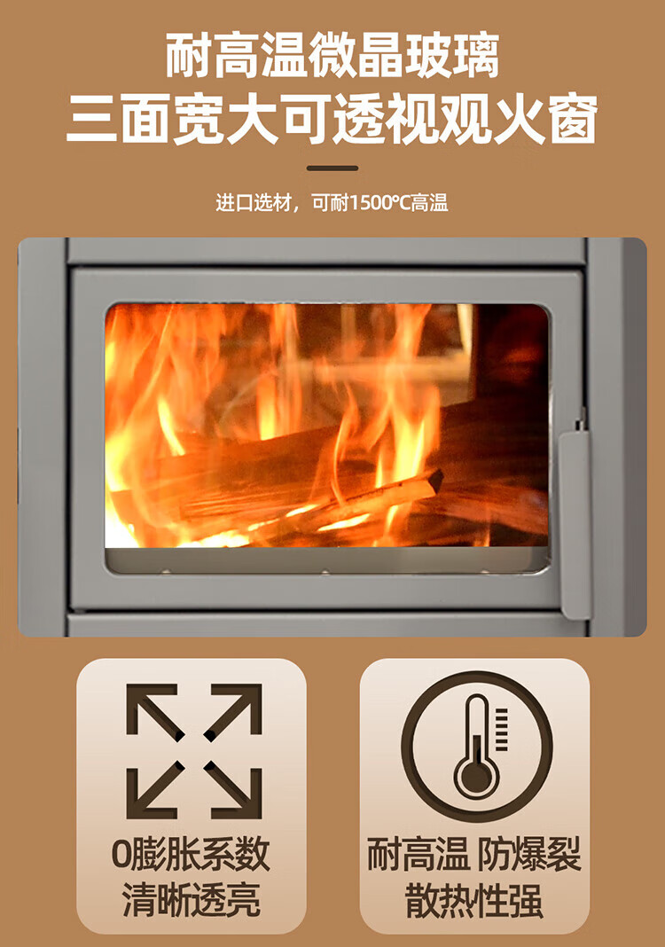 昊燃 柴煤两用铝合金气化炉取暖炉新式农村家用烧柴回风炉气化室内柴火炉烤火炉 铝合金炉+1.0米 玻璃黑边单面版