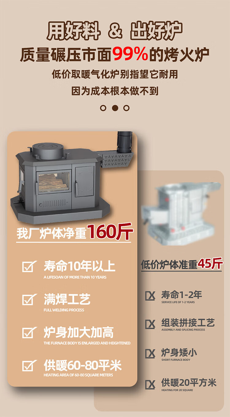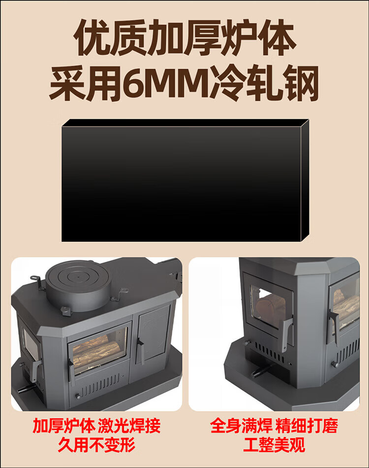 土灶旺冬季柴火灶加厚加高农村取暖炉烧柴家用节能采暖炉室内柴煤两用多功能回风炉烤火炉子 特厚款 1米加厚不锈钢【柴炉】
