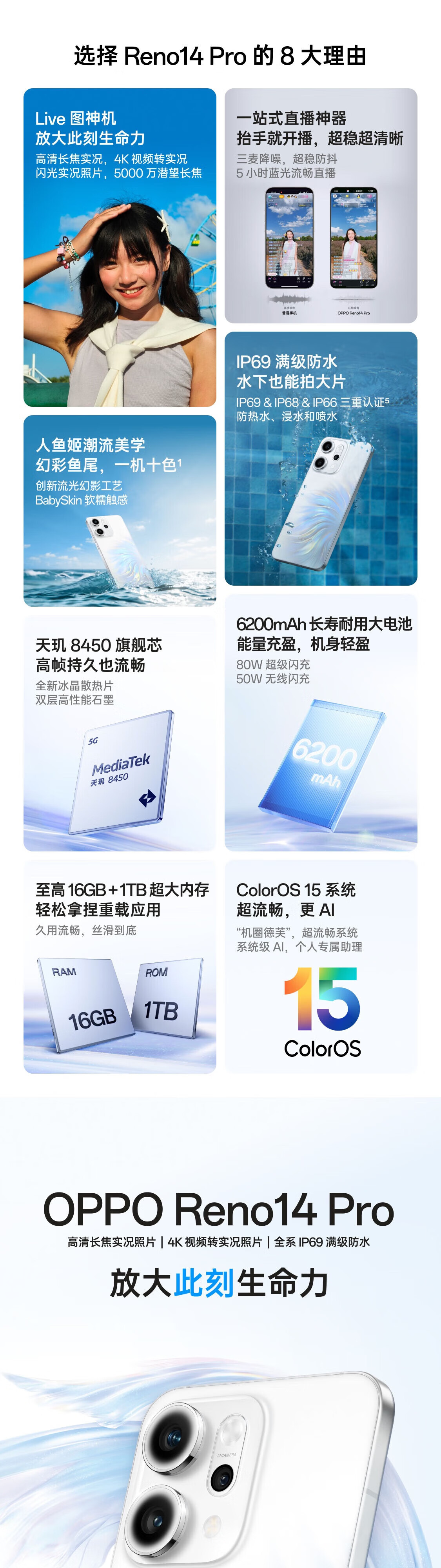 OPPO【分期免息】Reno14 Pro 直播神器 高清长焦实况照片全网通5G手机 Reno14 Pro 人鱼姬 16GB+512GB 官方标配+原封未激活+全国联保