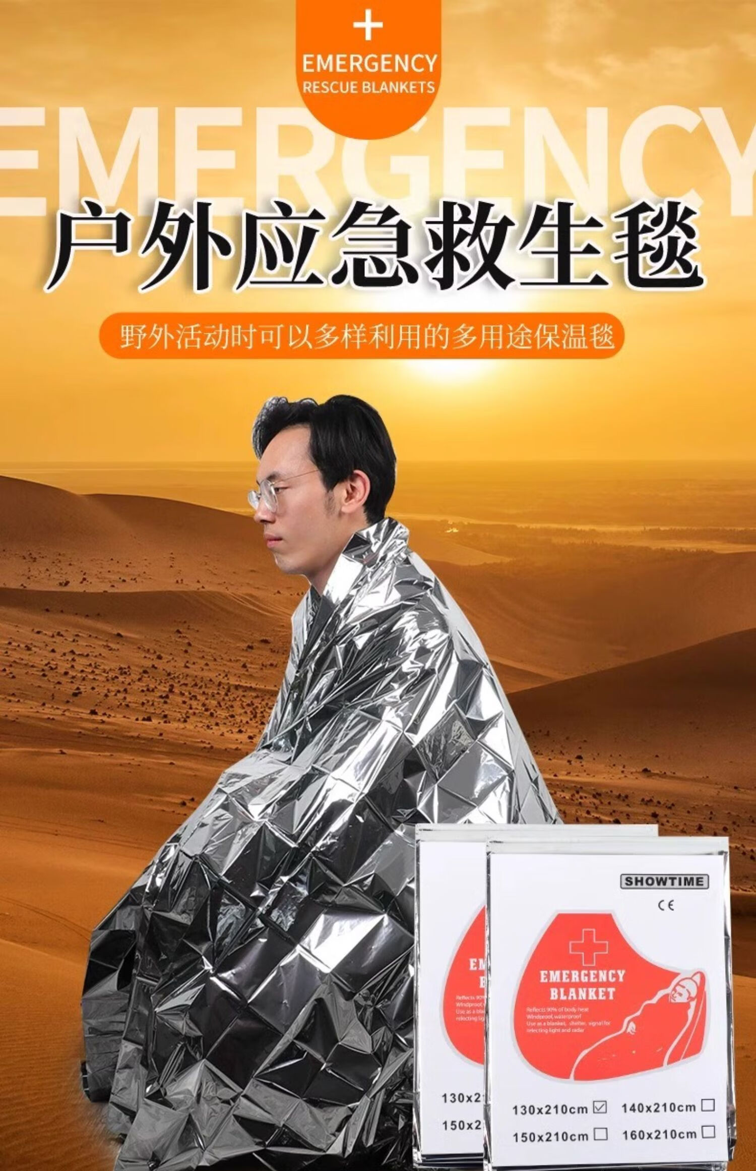 勋狸粑户外救生毯保命毯野外生存保温毯防晒毯末日装备睡袋帐篷应急救毯 160*210cm双面银色 【10个装】