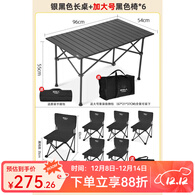 原始人户外折叠桌蛋卷桌露营桌椅便携式野餐野外椅子桌子一体套装 黑【长桌+6个加大号椅】