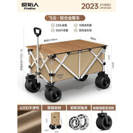 原始人露营推车户外营地车铝合金野营可折叠野餐小拖车桌板超大手拉杆车 卡其棕+铝合金木纹桌板