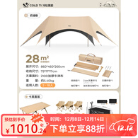 原始人天幕户外帐篷露营黑胶遮阳棚新型速开野营2025新款遮光新式遮阳棚 28㎡奶油咖一桌六月亮椅套餐+车