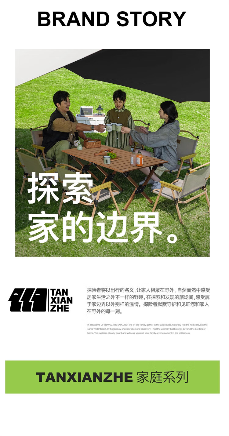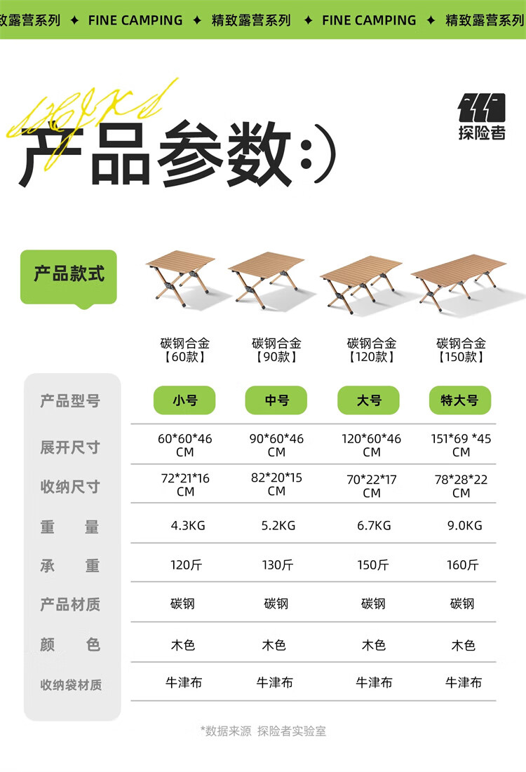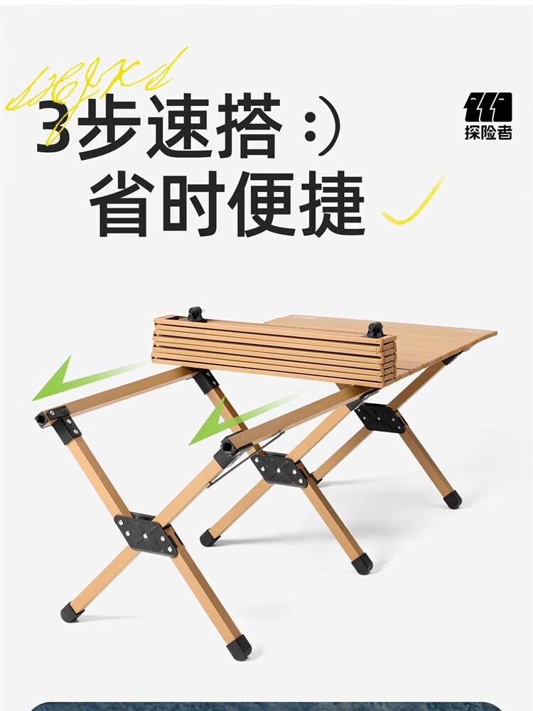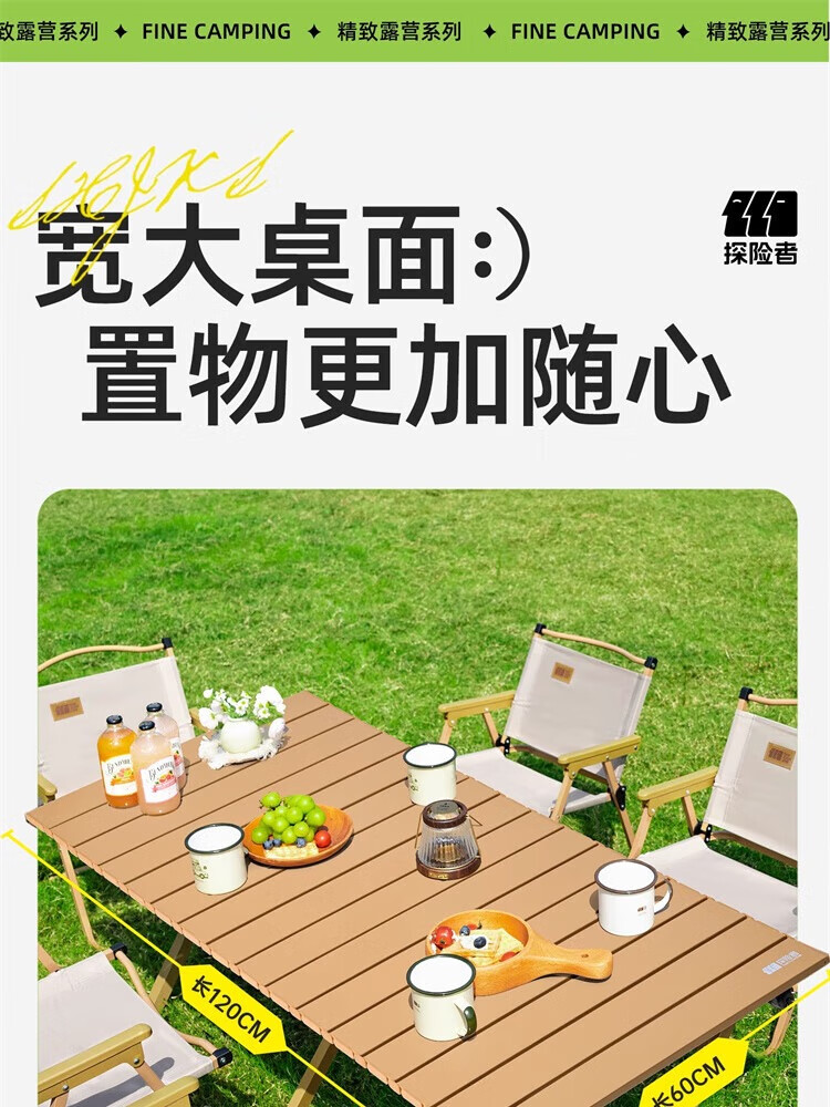 探险者露营桌椅月亮椅户外折叠桌子蛋卷桌便携式野营野餐野炊装备全套 【4-6人】大号桌木色款【赠手提包】