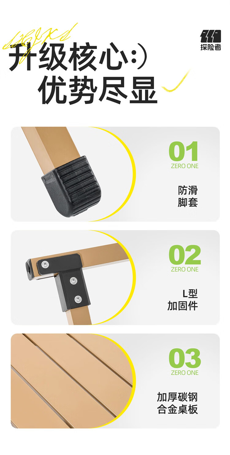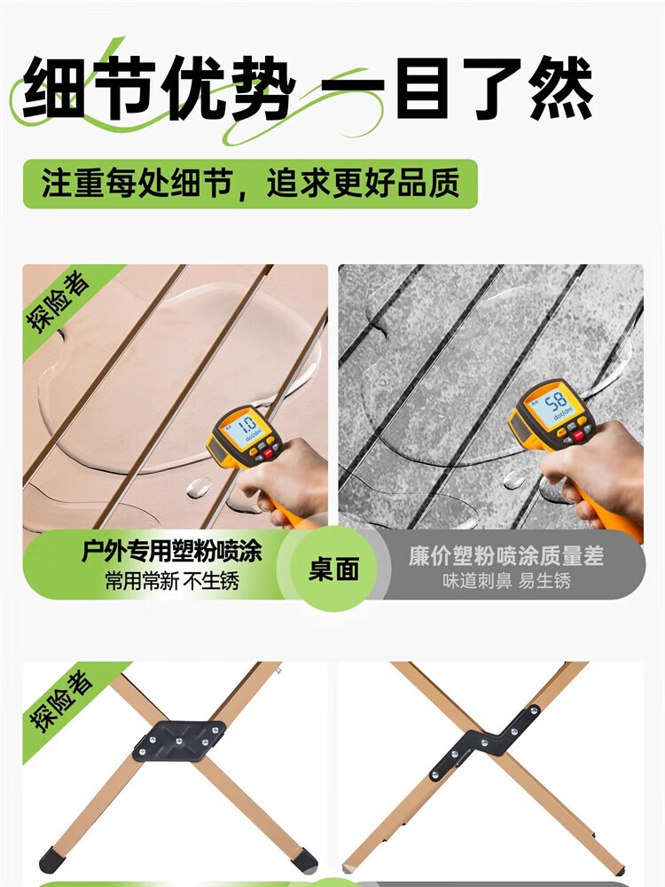 探险者桌子收到货了,质量非常不错桌子稳固性好,桌面宽大看着很舒服,搭建也方便的,收到货后到家就打开搭建使用了一下,很方便轻量便携,不错的!