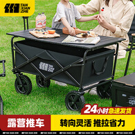 探险者露营车折叠推车户外手推快递车野营儿童可躺小拖车带桌板家用推车 【升级款160L】曜石黑+折叠桌板