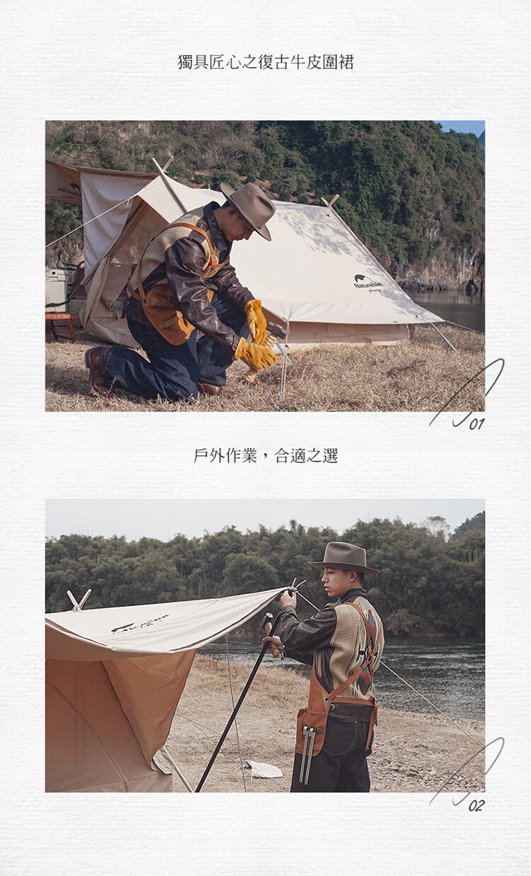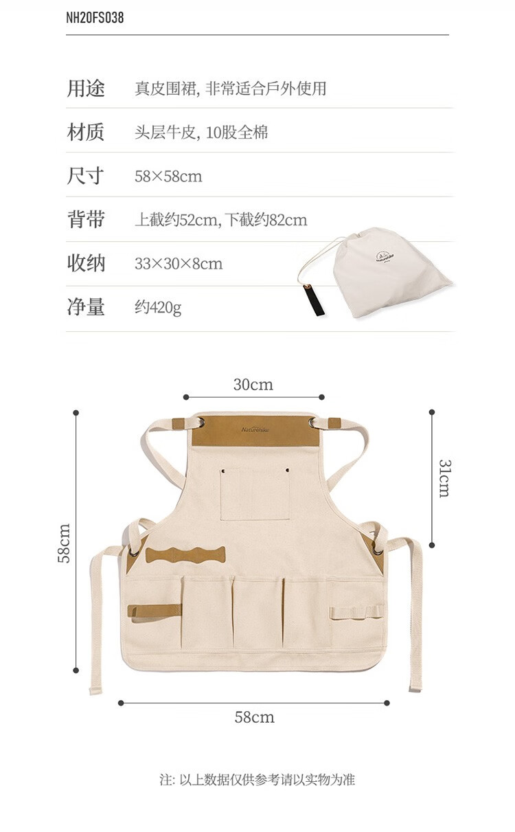 Naturehike挪客多功能真皮围裙 户外作业露营野营牛皮野炊工 本白