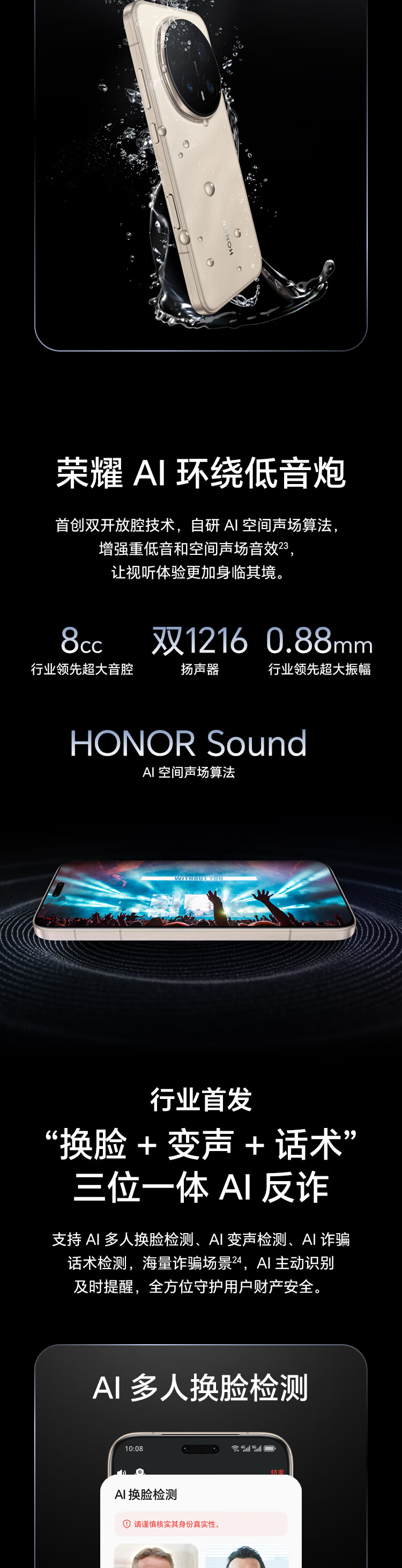 AI大模型,LTPO屏幕,高频PWM调光,防水防尘,无线充电,NFC,红外遥控,等深微曲屏
