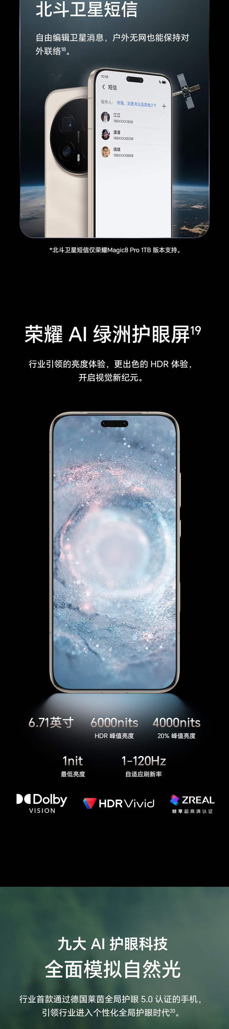 LTPO屏幕;德国莱茵护眼;高频PWM调光;巨犀玻璃